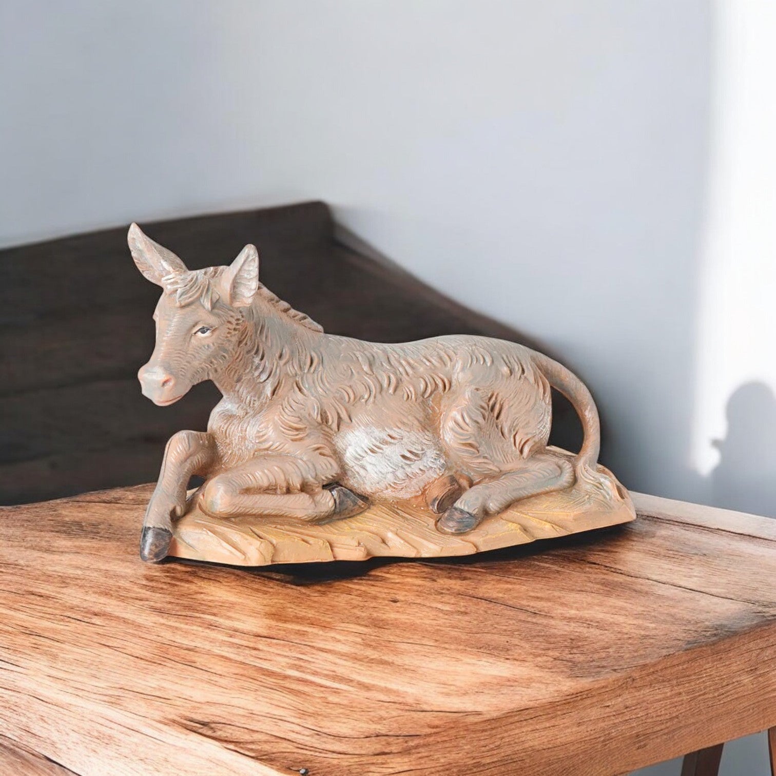 This Seated Donkey is a staple figure for any nativity display, often placed beside the Holy Family. The Seated Donkey rests peacefully on a grassy base, bringing authenticity and tradition to your Nativity scene. This figure captures that humble presence, making it a natural companion for the ox, shepherds, and Holy Family.