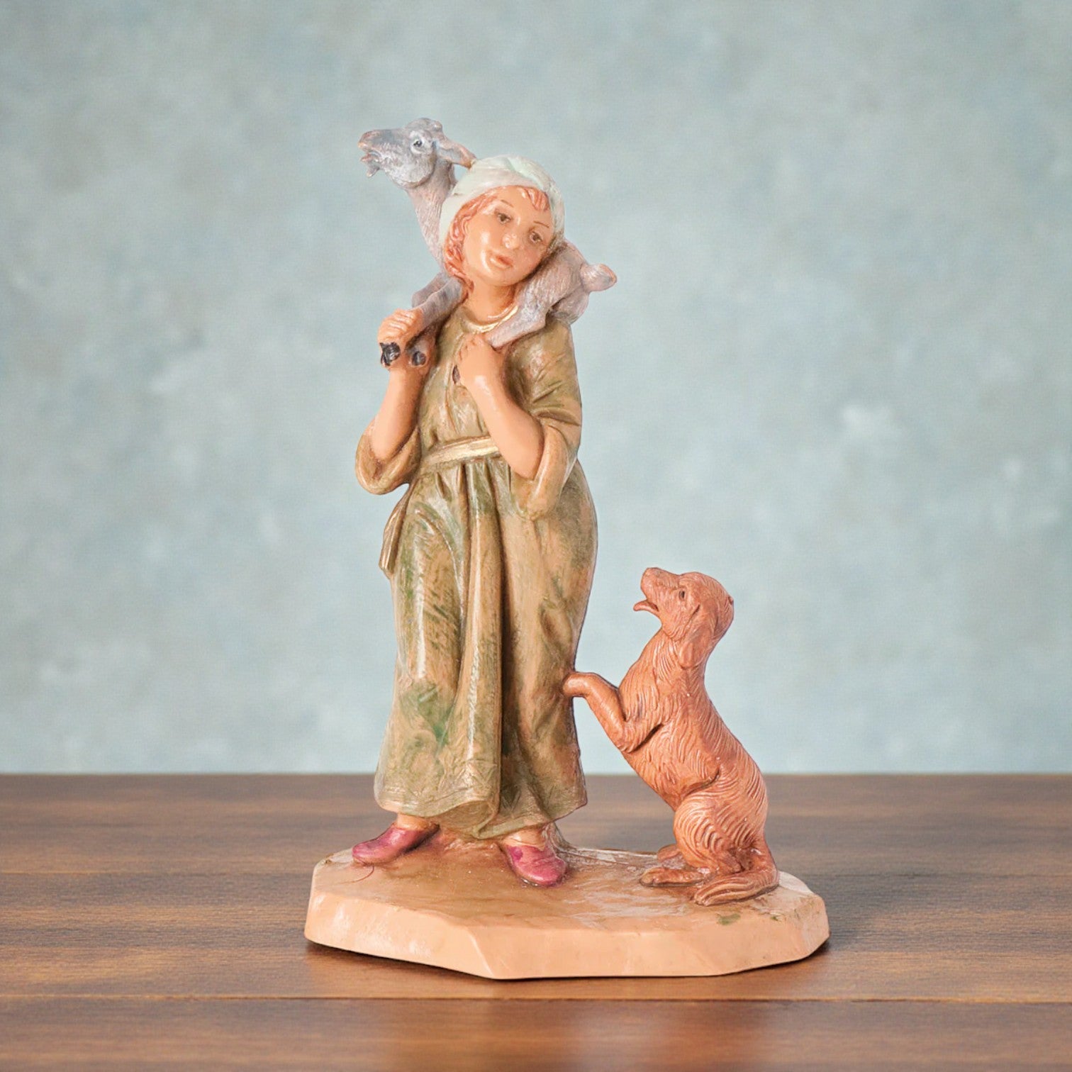 Ethan the Shepherd Boy by Fontanini carries a goat across his shoulders while his loyal dog Ezri playfully follows at his side. His figure tells the story of a young shepherd who learned courage and responsibility among his family™s flock, standing as a reminder of care and devotion. With its charming detail and heartfelt storytelling, this piece is a wonderful way to expand your Nativity and bring a touch of life and character to your display.