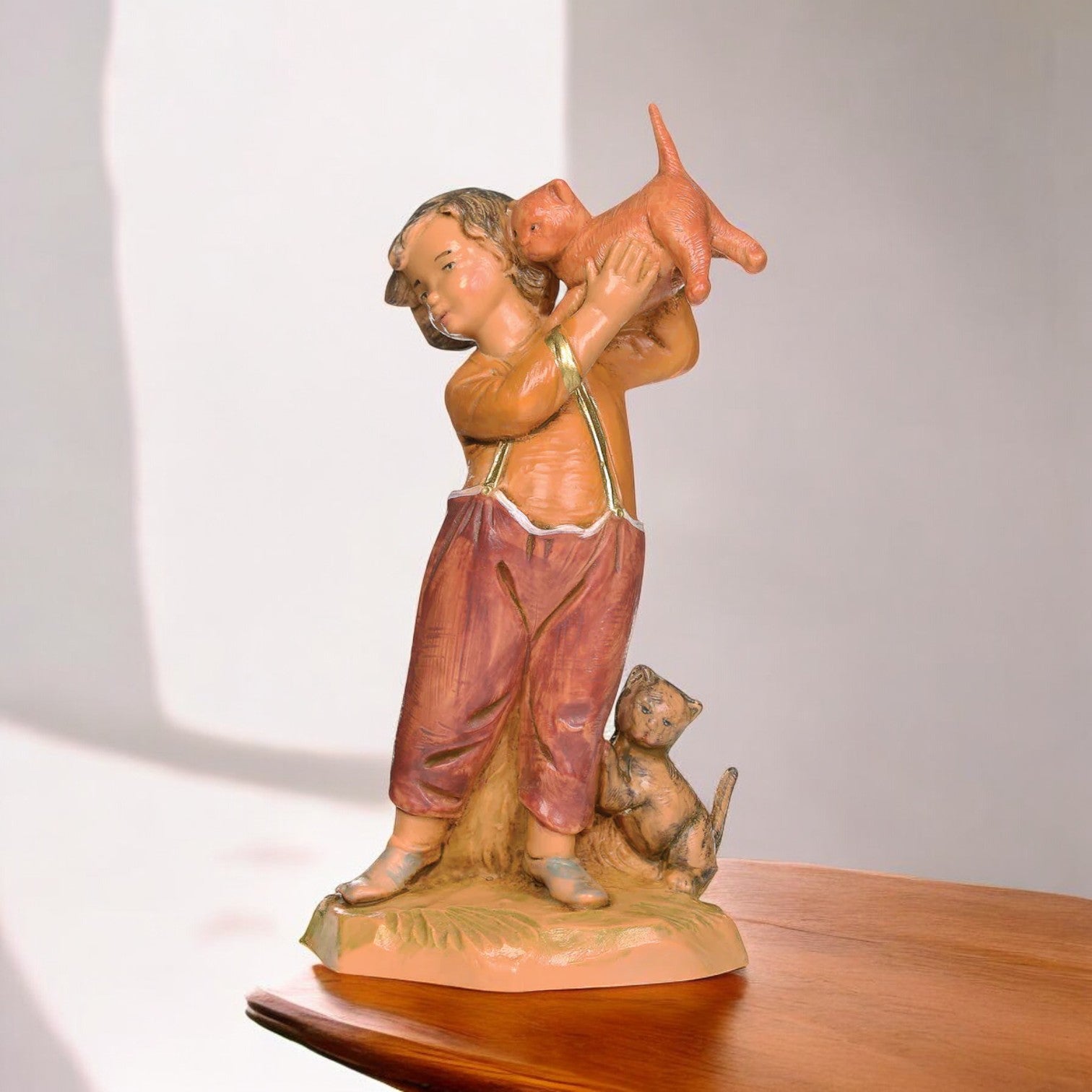 Seth Boy with Cats villager figurine for 5 inch scale Fontanini nativity scene
