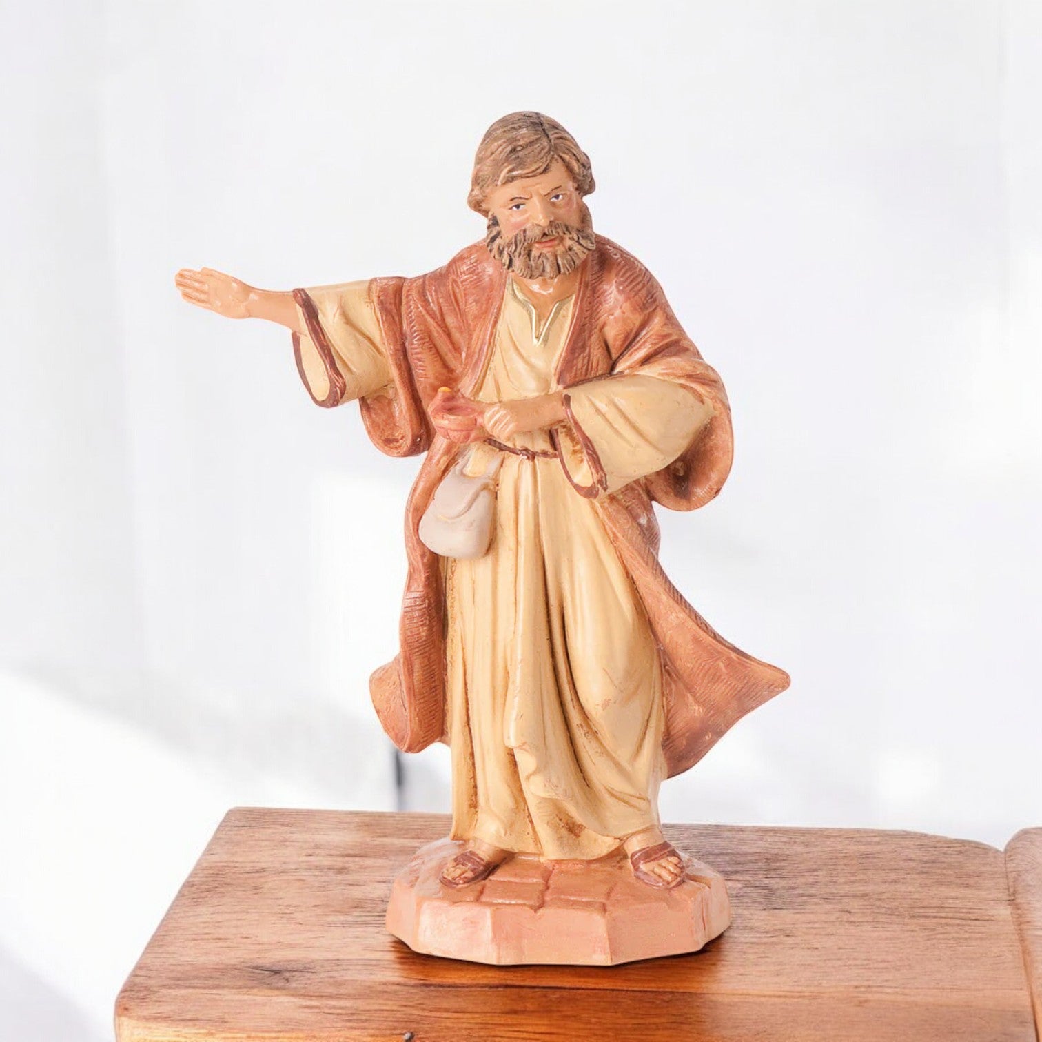 This figure of Thaddeus, the Innkeeper, honors the man who offered his stable to Mary and Joseph. A gracious host, Thaddeus upheld his father's promise to never turn away a stranger. He unknowingly welcomed the Savior, playing a quiet, pivotal nativity role. The figure captures Thaddeus mid-gesture, recalling his moment of decision and grace.