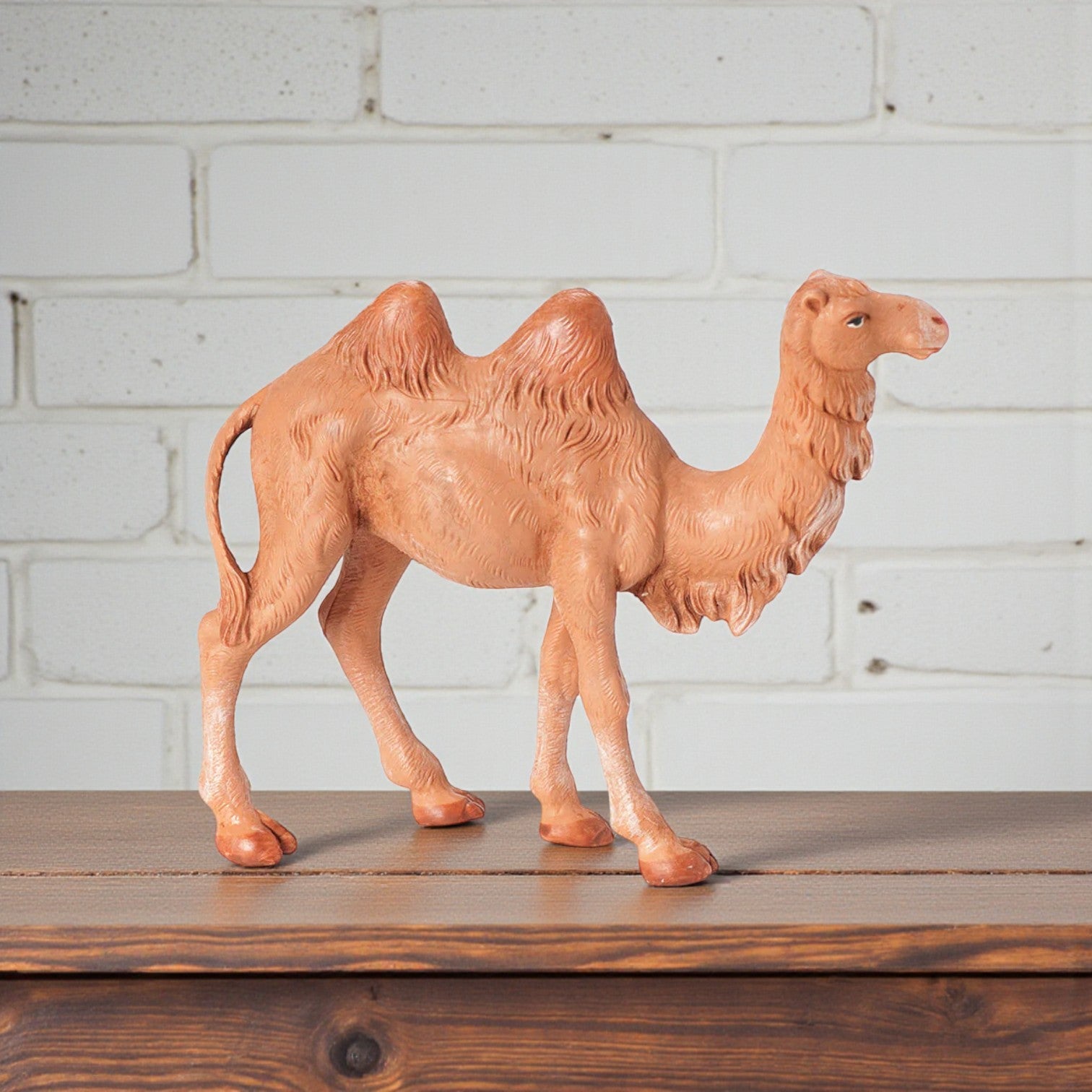 Essential to the great journey to Bethlehem, this camel brings authentic movement and story to your nativity display. The figure features dual humps and finely sculpted fur texture across its neck and body, evoking the look of a well-traveled caravan companion. Whether displayed alongside kings, merchants, or tent accessories, this standing camel helps recreate the desert pilgrimage that led so many to the manger.