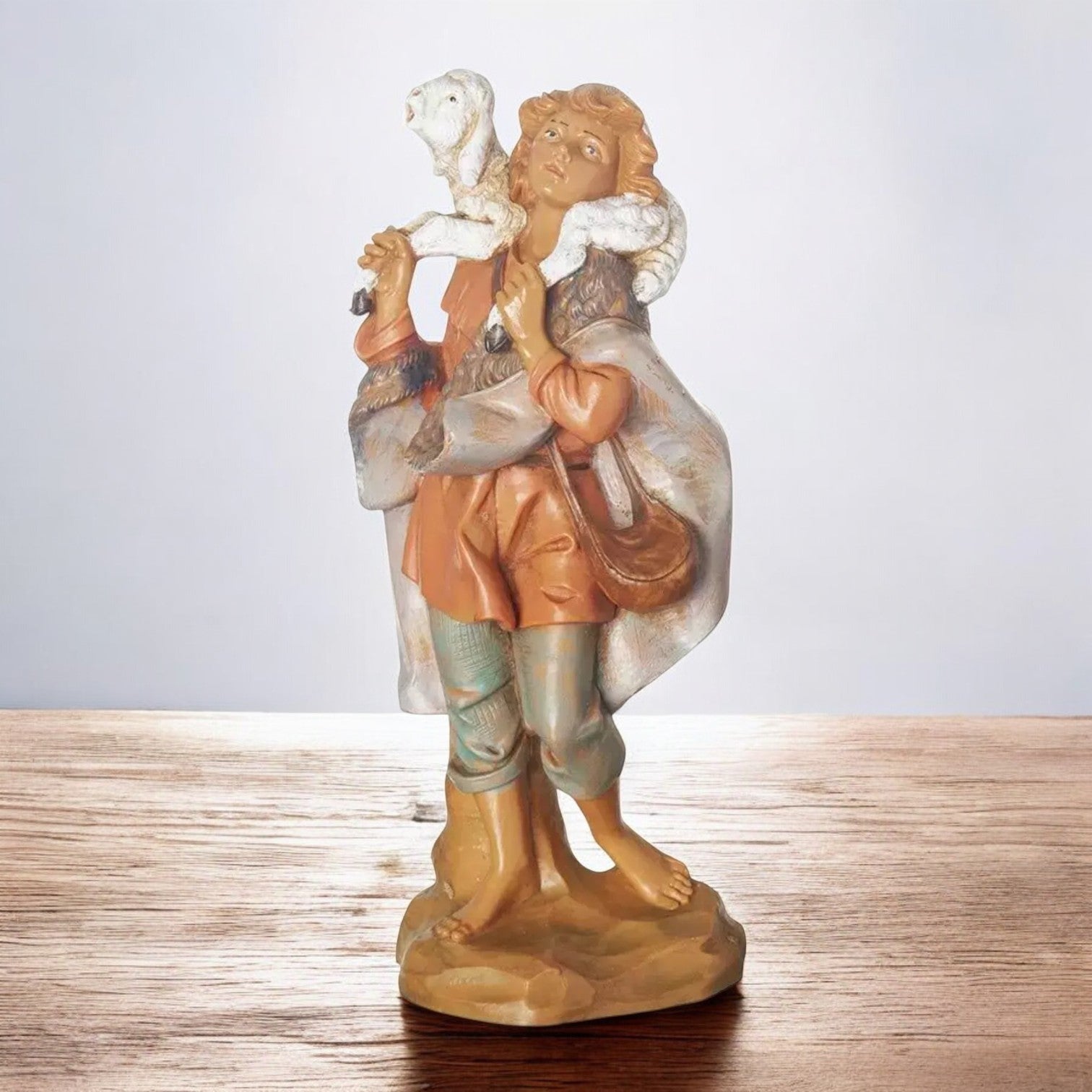 Gabriel the Shepherd with a sheep slung over his shoulder figurine for 7.5 inch scale Fontanini nativity scene