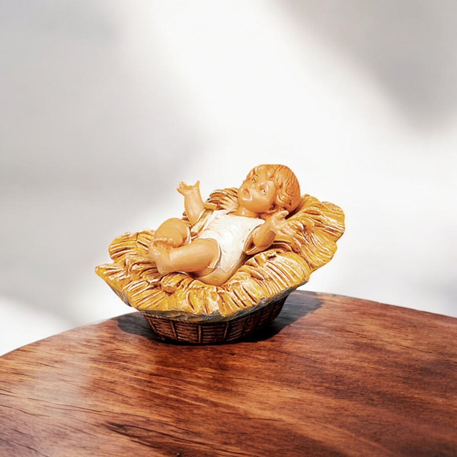 At the center of every nativity stands the Christ Child”radiant, humble, and filled with promise. This Baby Jesus figure is sculpted with care, resting on a bed of textured straw within a woven-style manger. The figure is removable, allowing you to display Him nestled beside Mary and Joseph or held in reverent hands for prayerful reflection.