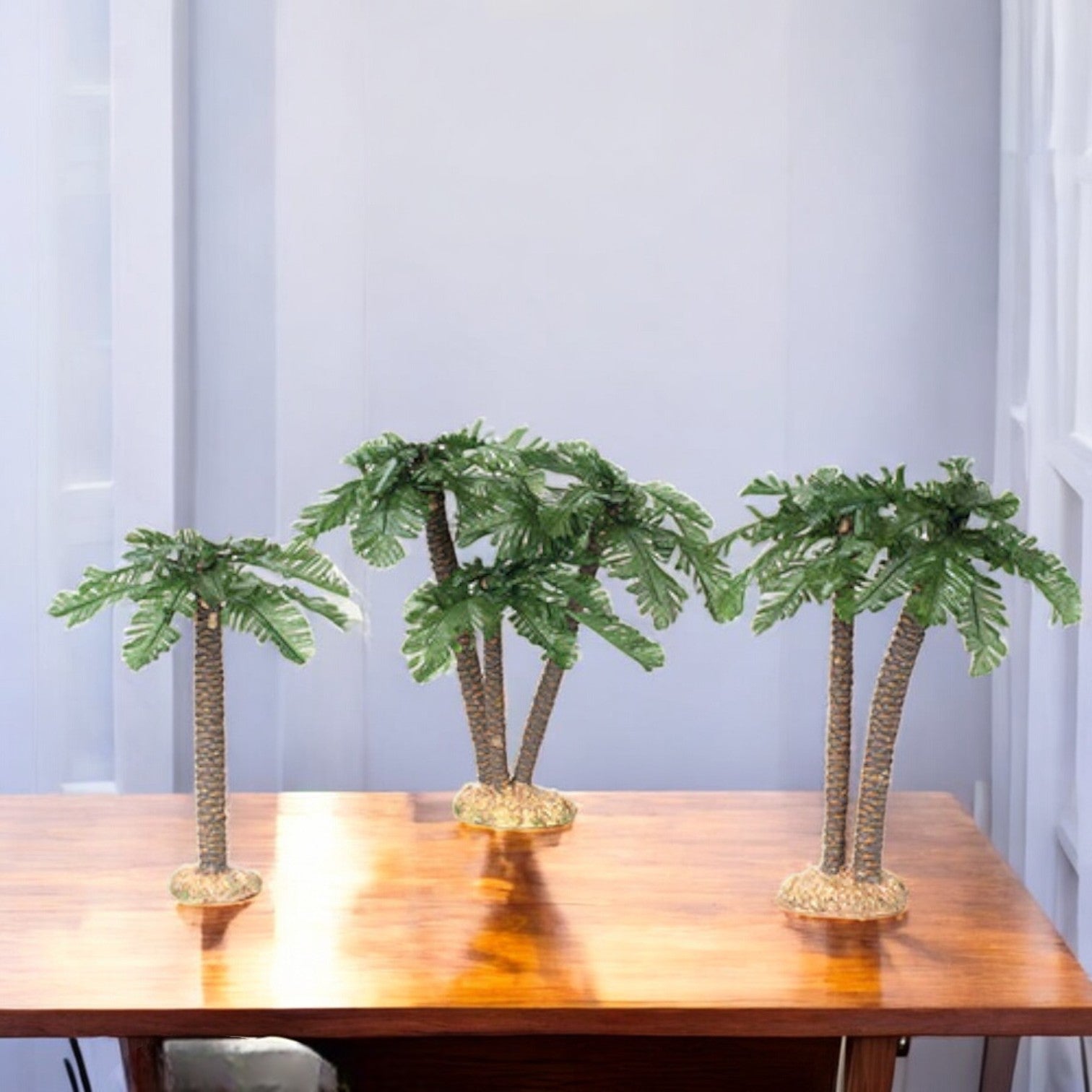 This 3-PC palm tree set brings life and dimension to your nativity or village display. Each tree features a textured trunk and layered green fronds, designed to create the look of a desert oasis or a shaded market street. With three different shapes and heights, they add natural variety and depth, helping frame figures and structures within your scene. A versatile accessory, these palms can be grouped together for a clustered effect or placed throughout your display to tie the landscape together.