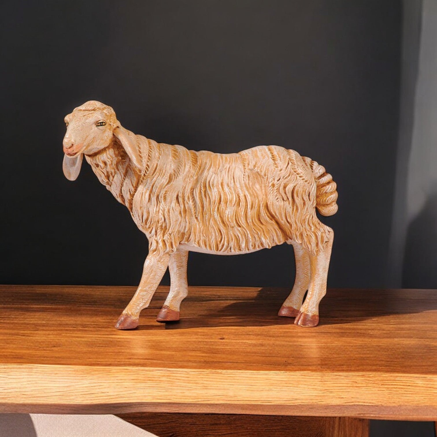This 20" scale Standing Sheep by Fontanini adds realism and movement to your nativity display. Sculpted with detailed fleece and attentive posture, it pairs seamlessly with shepherd figures and animal groupings for a fuller village scene.