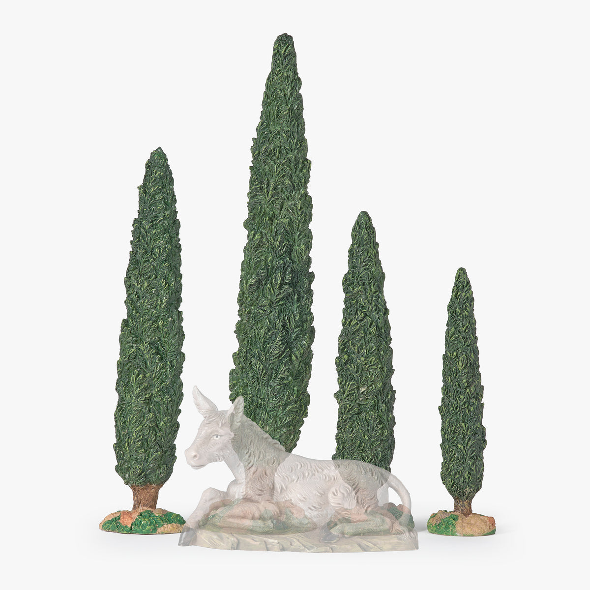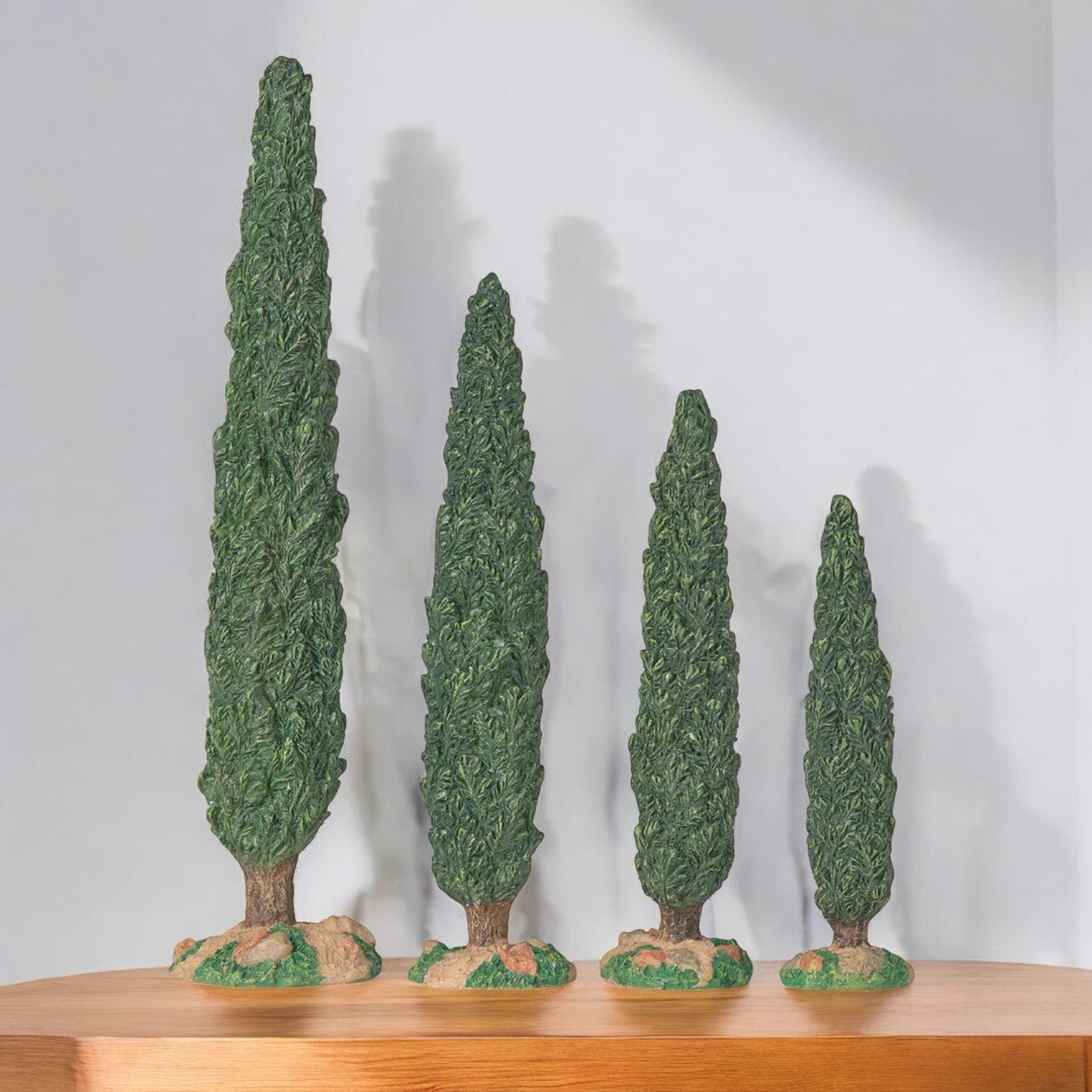 These tall, slender cypress trees are a classic detail that instantly adds realism and atmosphere to a nativity village. Sculpted with textured green foliage and earthy bases, each tree varies in height to create natural depth and balance in the display. Whether placed along a pathway, near buildings, or framing the stable, they bring vertical dimension and the authentic look of the Bethlehem landscape.