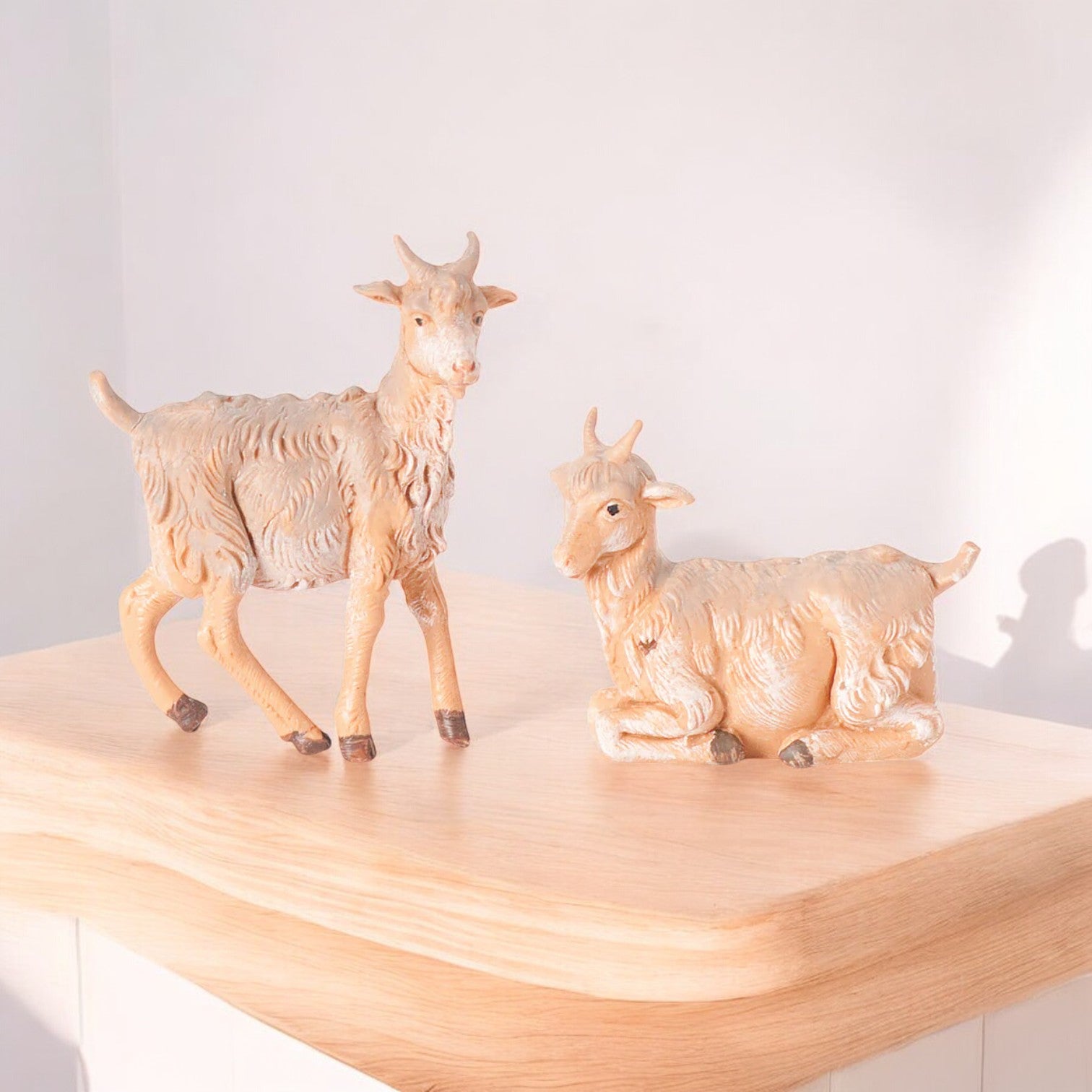 Bring the rustic life of the countryside into your Nativity with this beautifully crafted pair of gray goats. One stands watch while the other rests, their textured coats and lifelike features capturing the humble charm of animals that would have gathered near the stable on the night of Christ™s birth. More than background pieces, these goats enrich the scene with movement and character, making them an essential set for building a collection that feels complete.