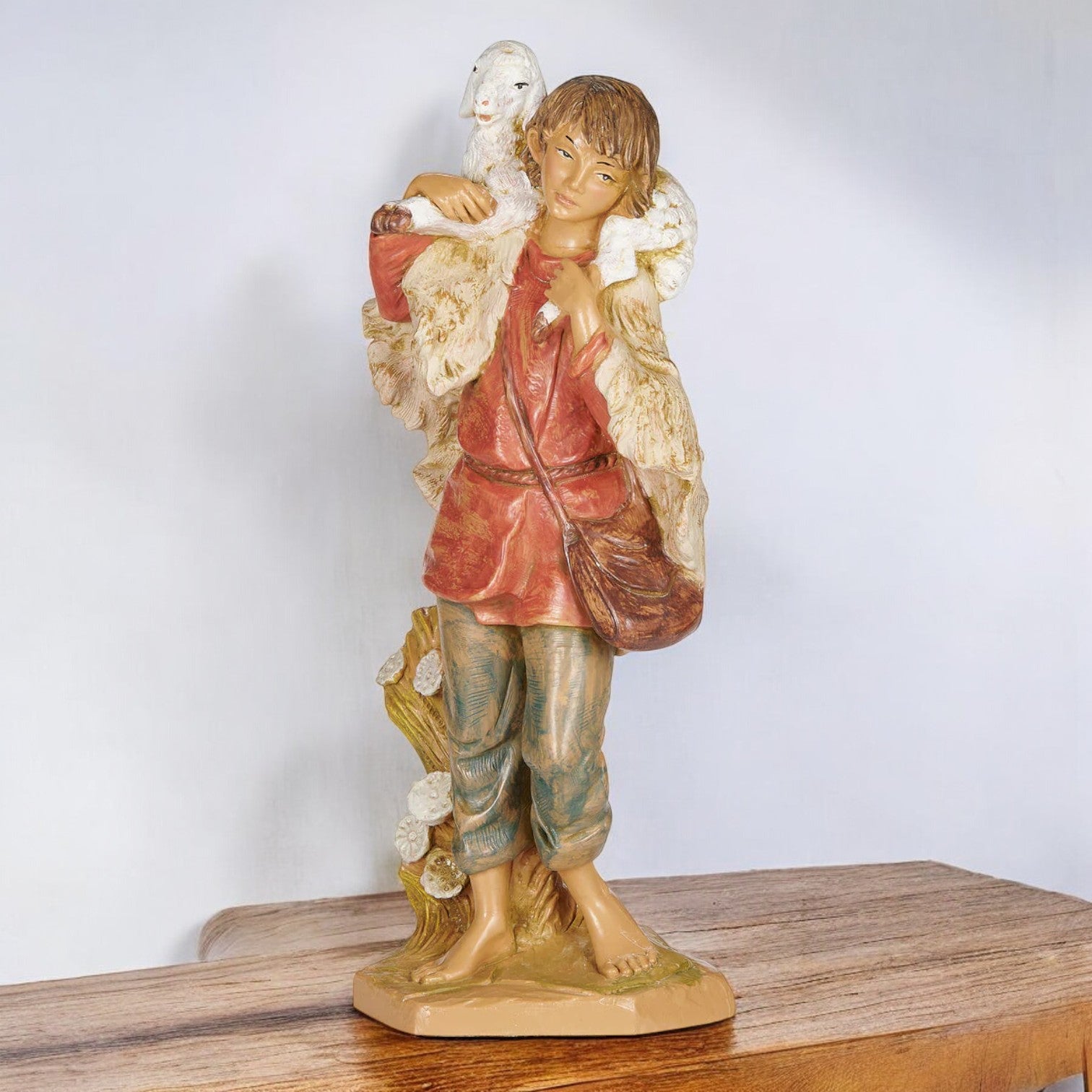 Gabriel was a young shepherd boy who carried his lamb upon his shoulders, showing both care and responsibility beyond his years. On the night of Christ™s birth, he was among those who heard the angels™ proclamation and made his way to Bethlehem to see the newborn King. This figure captures Gabriel in mid-step, a lamb resting across his shoulders, with rustic garments and lifelike details that reflect his humble place in the Nativity story.