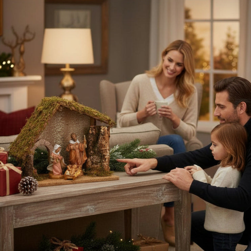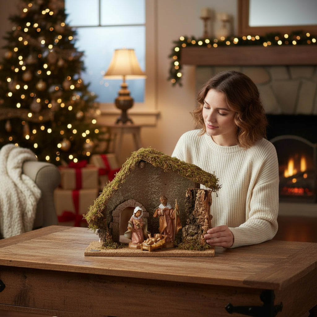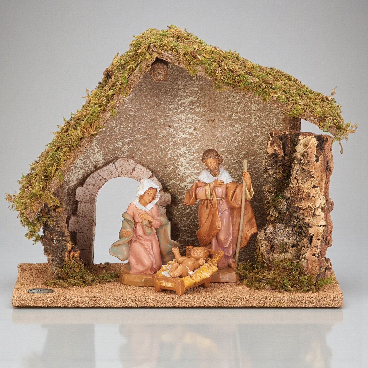 This charming Nativity Starter Set captures the quiet wonder of the Holy Night. Nestled within a rustic Italian stable, Mary and Joseph watch over the newborn Savior, their expressions filled with awe and devotion. The natural textures of the stable create a warm, inviting backdrop that draws the eye to the humble beauty of the scene. Ideal for beginning a Fontanini collection or gifting to someone special, this set embodies the timeless peace and joy of Christmas.