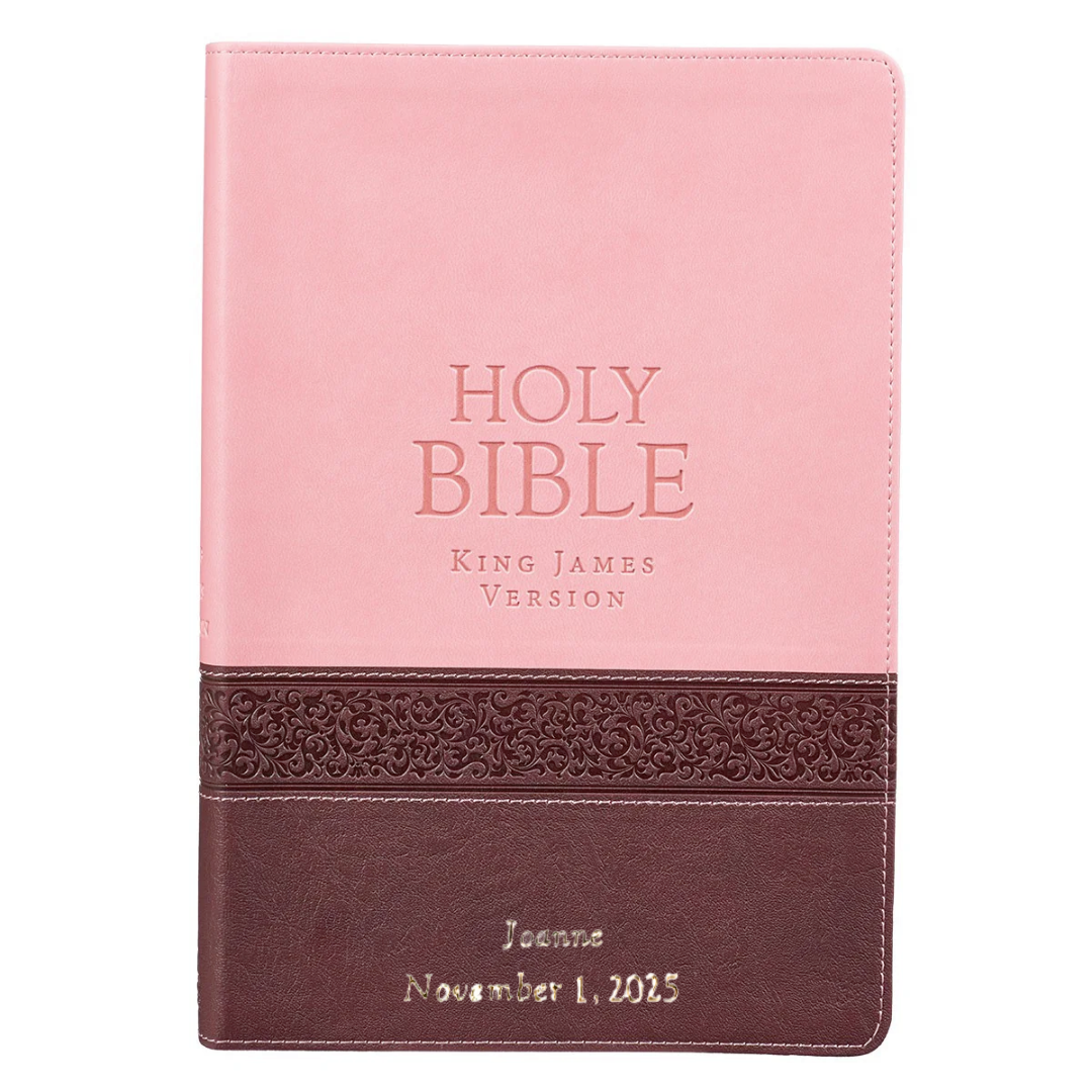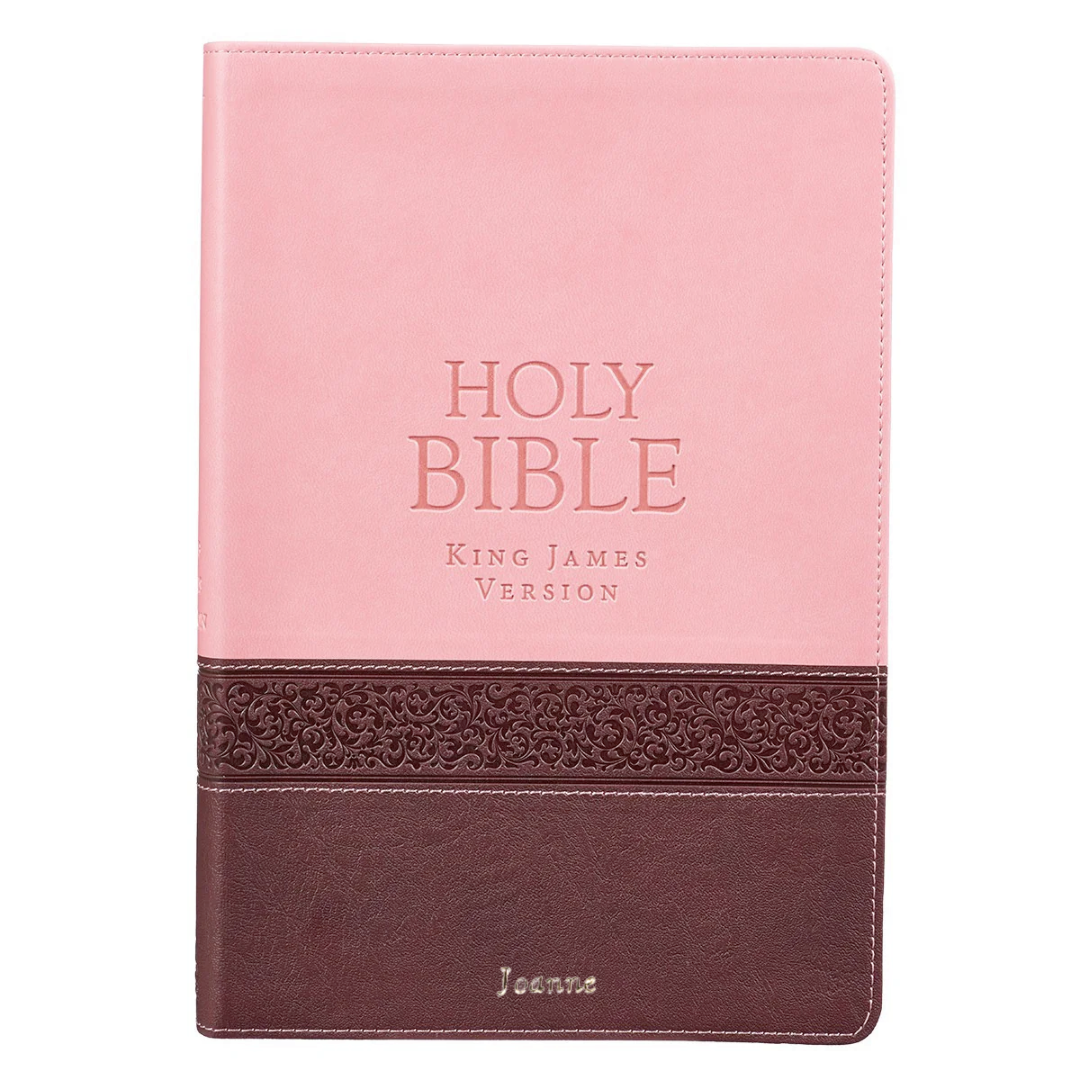 This exquisite Brown & Pink Large Print Faux Leather Thinline King James Version Bible can be personalized with a name or initials for a meaningful gift for a mother or grandmother on their birthdays or Christmas.