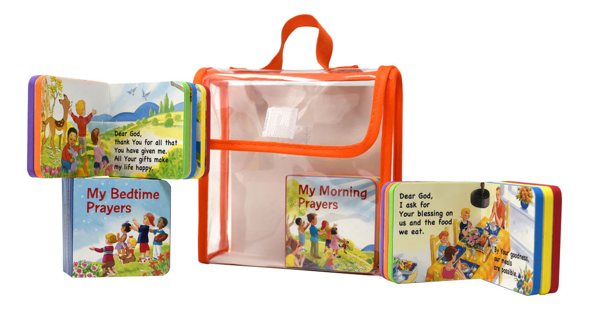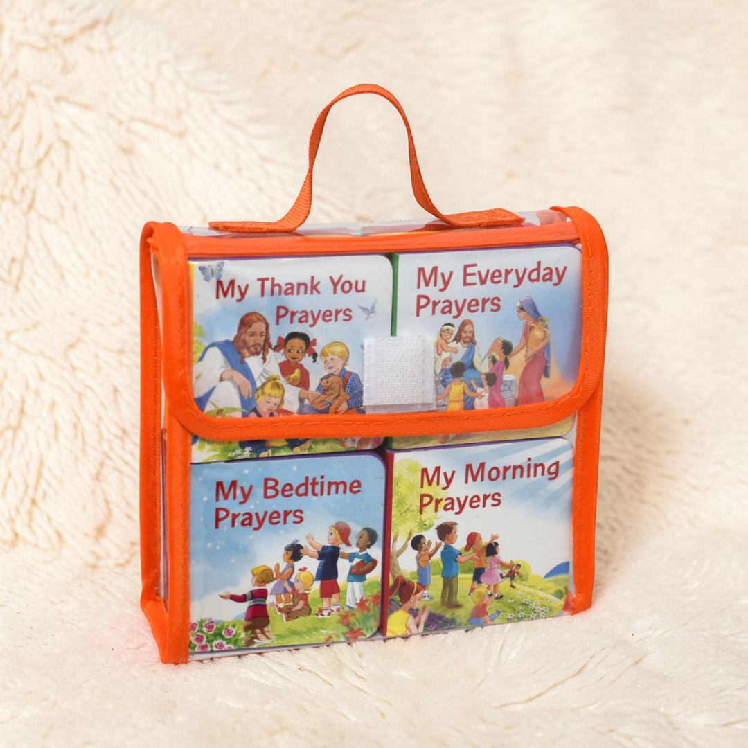 Introduce your little ones to the beauty of Catholic prayer with this delightful 4-book treasury set. Specially designed for tiny hands and growing hearts, each vibrant board book features full-color illustrations that bring essential prayers to life. Made from durable, lightweight EVA material, these books are perfect for toddlers and preschoolers who are just beginning their faith journey. The complete set comes packaged in a clear vinyl case, making it an ideal gift for baptisms, birthdays, or any special occasion.
