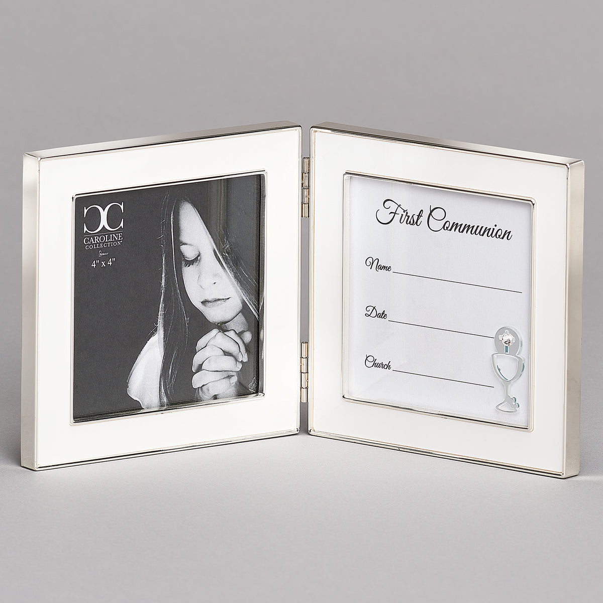 - Beautifully crafted double photo frame designed specifically for First Communion memories