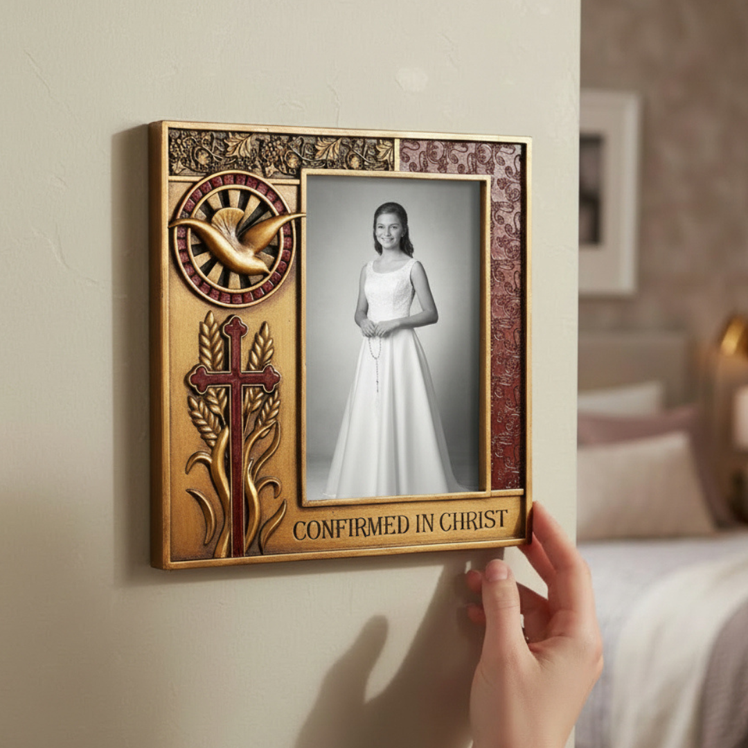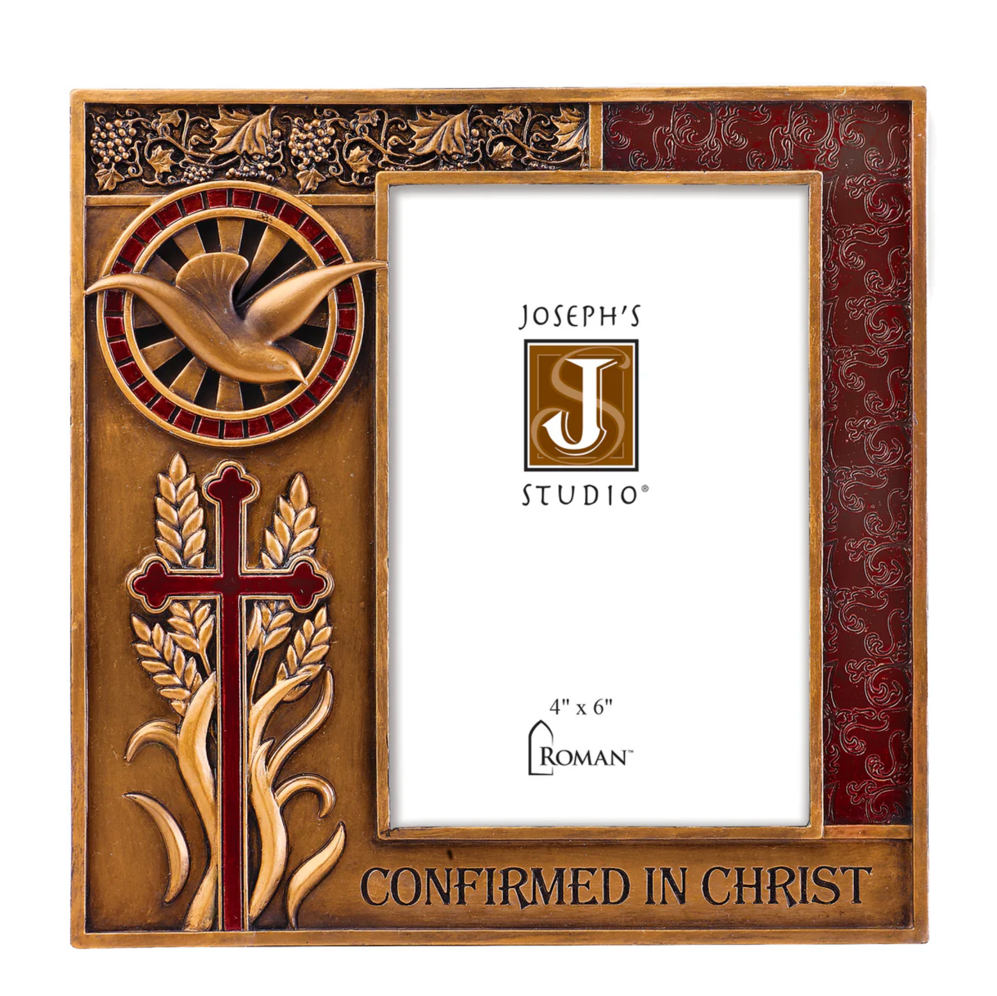 Celebrate the sacred milestone of Confirmation with this beautifully crafted bronze finish frame from Joseph's Studio. Designed to hold a cherished 4x6 photograph, this elegant keepsake combines timeless religious artistry with quality craftsmanship. The warm bronze finish adds a reverent, sophisticated touch that complements any décor, making it a meaningful way to preserve and honor this important moment in faith.