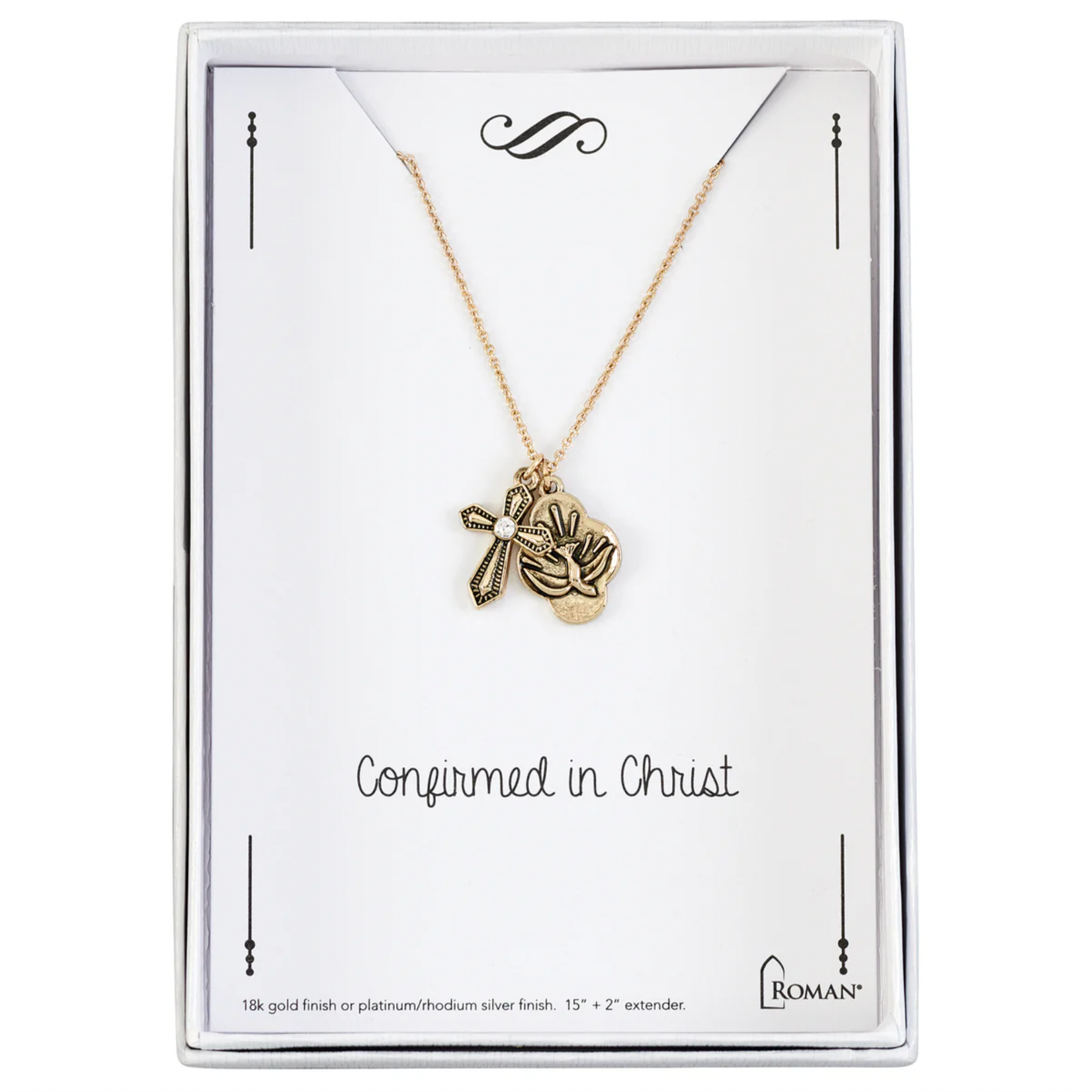 Celebrate this sacred milestone with our beautifully crafted Confirmation Necklace, designed to honor the grace and significance of the sacrament. This adjustable charm necklace features a delicate 15-inch chain with a 2-inch extender, ensuring a perfect fit for growing girls. Expertly crafted by Roman, a trusted name in religious gifts, this necklace combines timeless elegance with meaningful symbolism—making it a cherished keepsake that will be treasured for years to come.