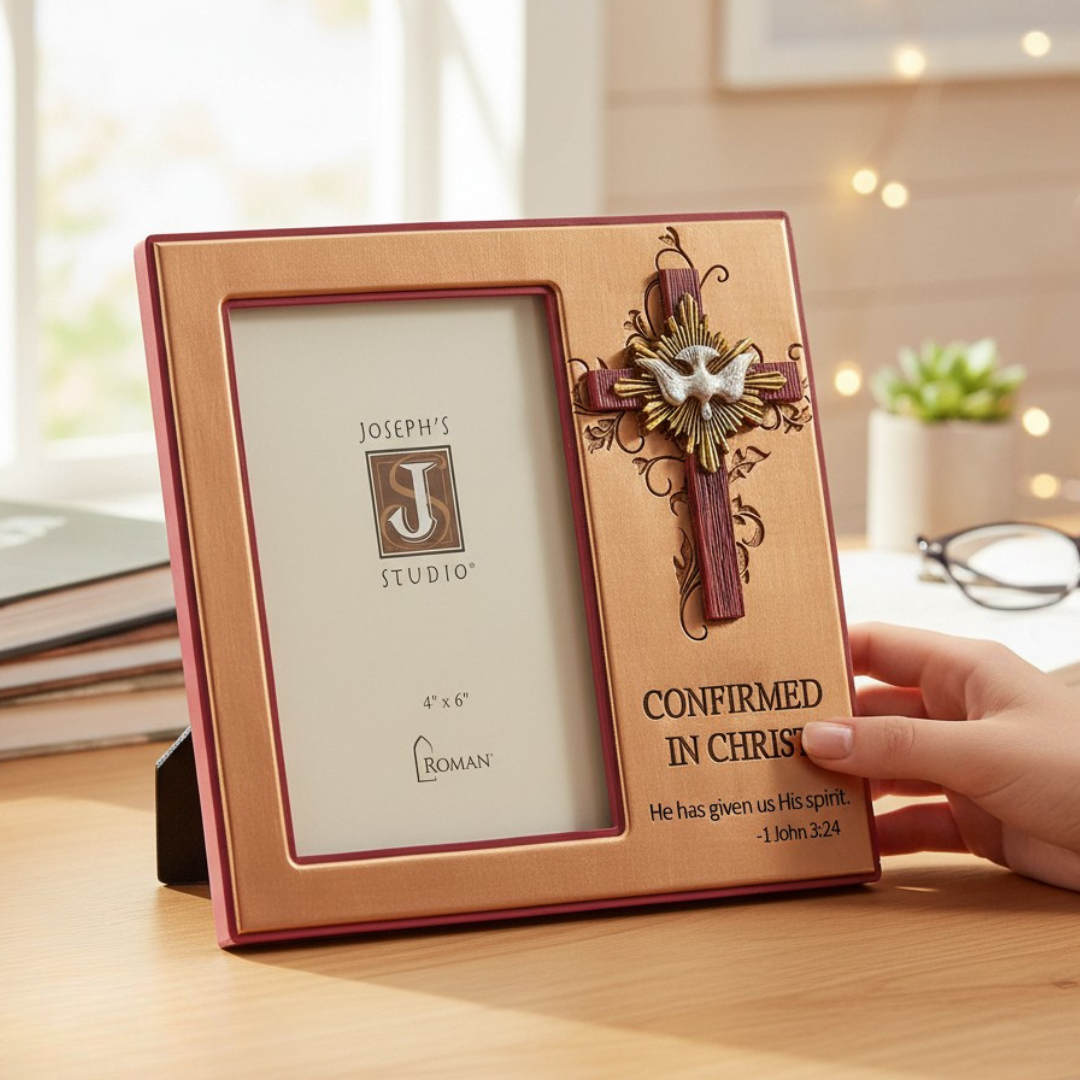 Celebrate one of life's most sacred milestones with this beautifully crafted Confirmation Frame. Beautifully designed by Roman, this 7.75-inch resin frame features elegant imagery and thoughtful details that honor the significance of Confirmation. The frame's timeless design will make a treasured keepsake that will preserve precious memories for years to come. Display a cherished 4x6 photograph from this special day in a frame worthy of the occasion.