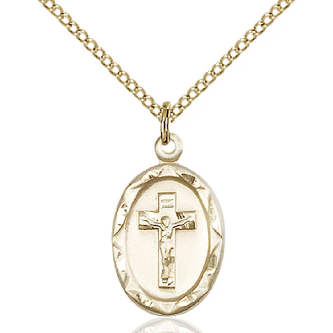 3/4 x 3/8 14kt Gold Filled Crucifix Pendant on a 18 inch Gold Filled Light Curb Chain