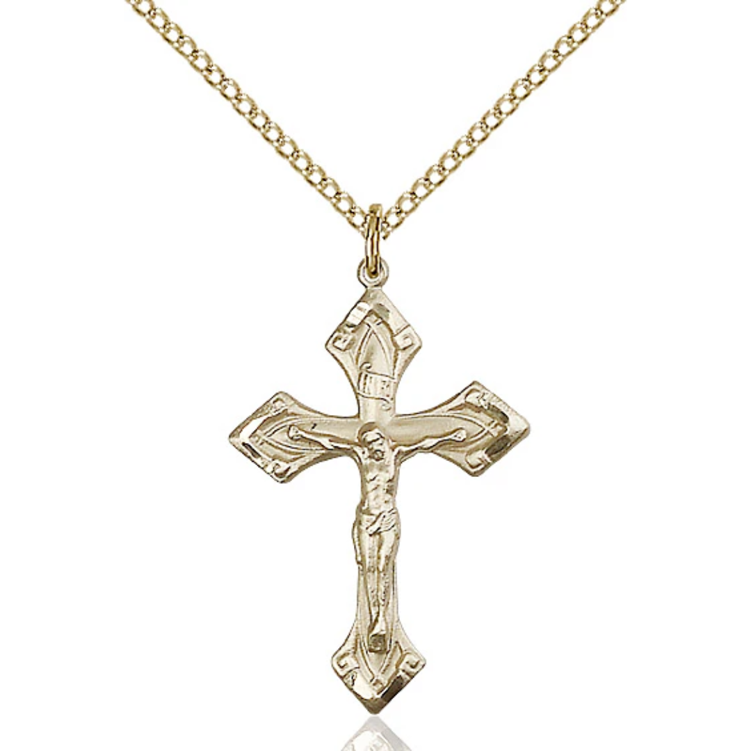 1 1/8 x 3/4 14kt Gold Filled Crucifix Pendant on a 18 inch Gold Filled Light Curb Chain