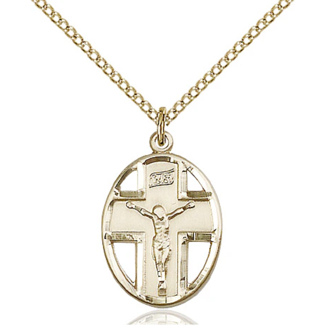 3/4 x 1/2 14kt Gold Filled Crucifix Pendant on a 18 inch Gold Filled Light Curb Chain