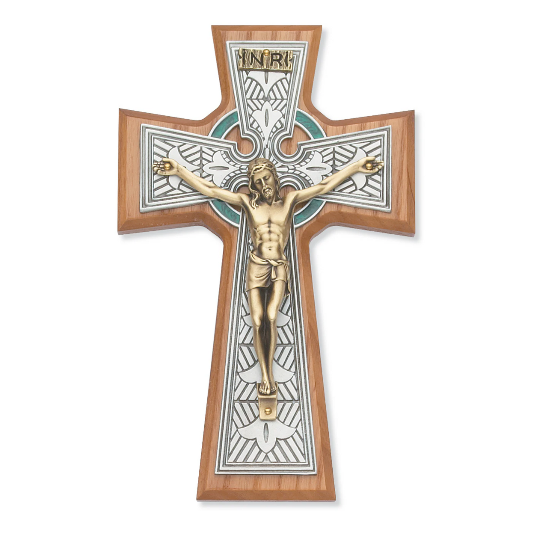 Walnut Stained Two Tone Celtic Crucifix