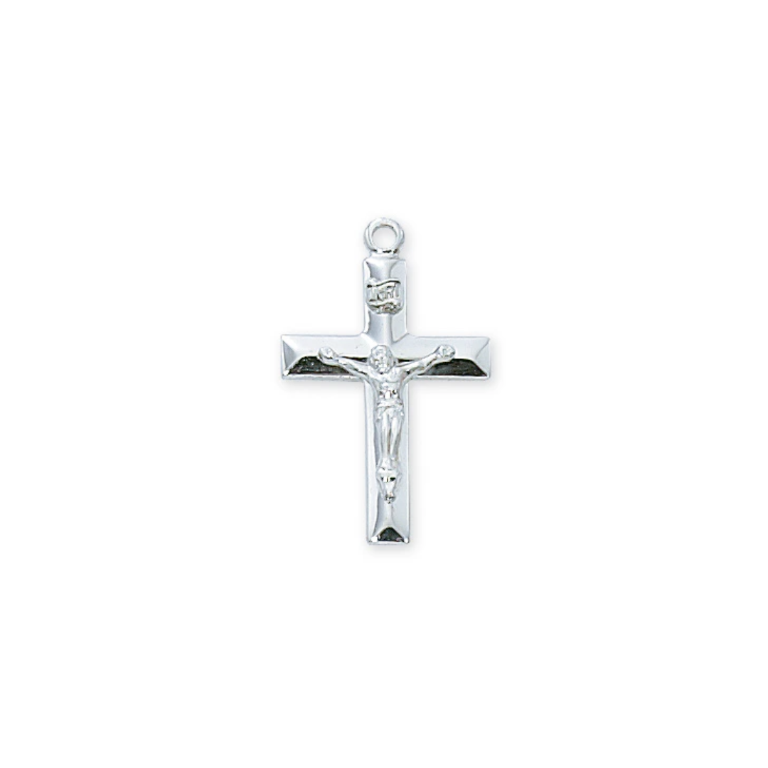 Sterling silver crucifix necklace with an 18 inch rhodium plated chain