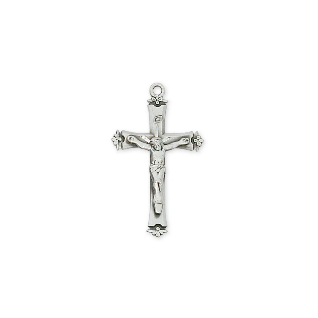 Sterling silver crucifix necklace with a rhodium plated 18 inch chain