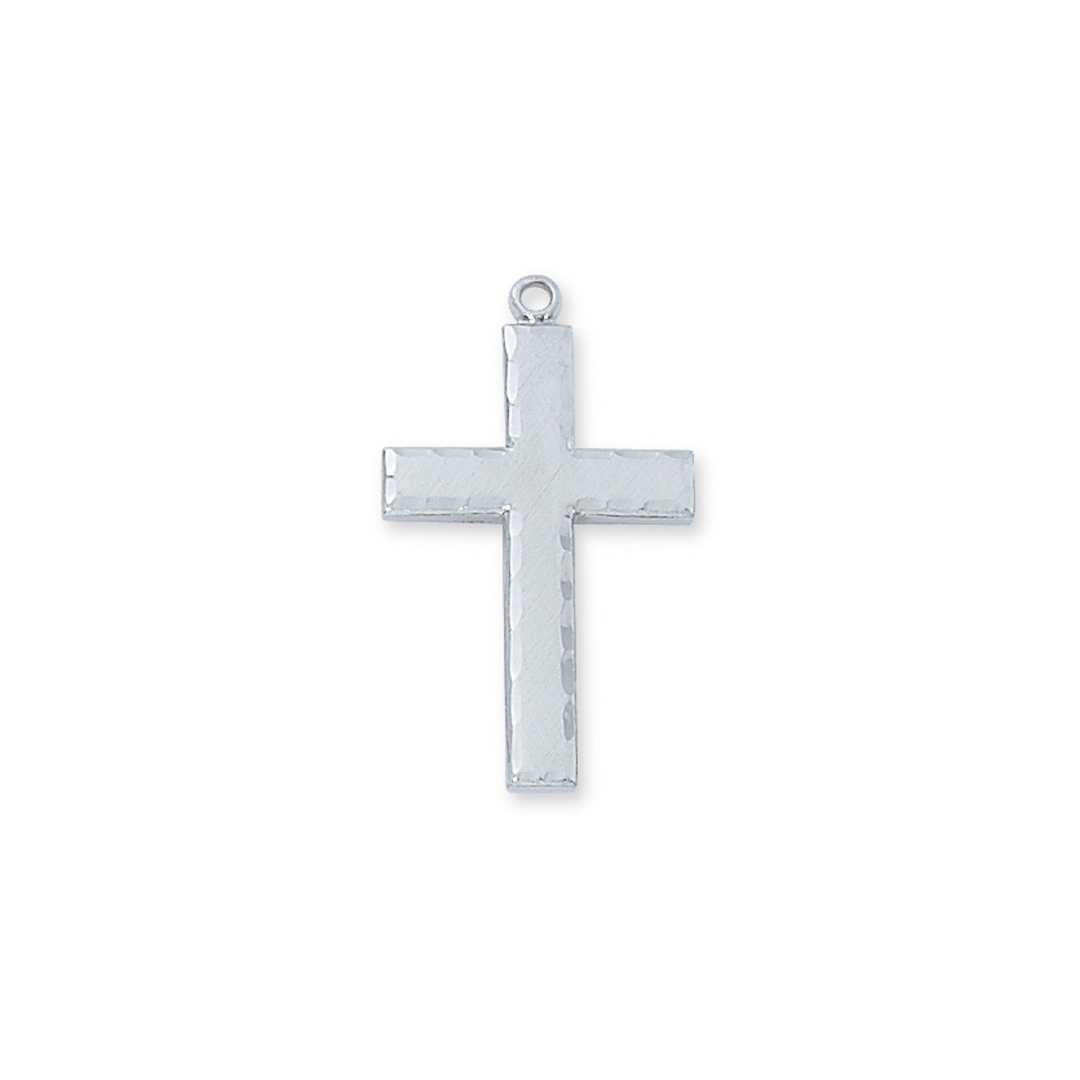 Sterling silver cross necklace with a rhodium plated 24 inch chain