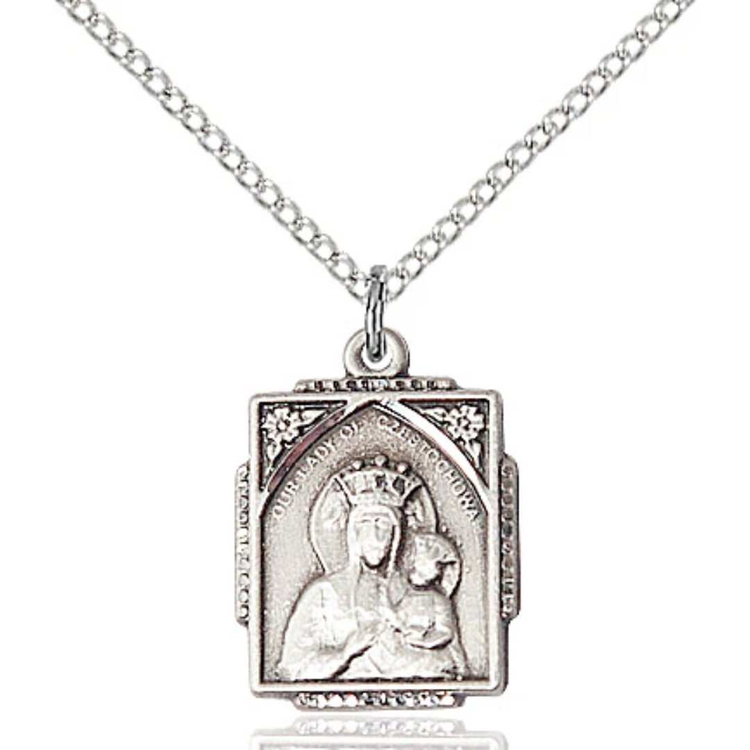 3/4 x 1/2 Sterling Silver O/L of Czestochowa Pendant on 18 inch Sterling Silver Light Curb Chain