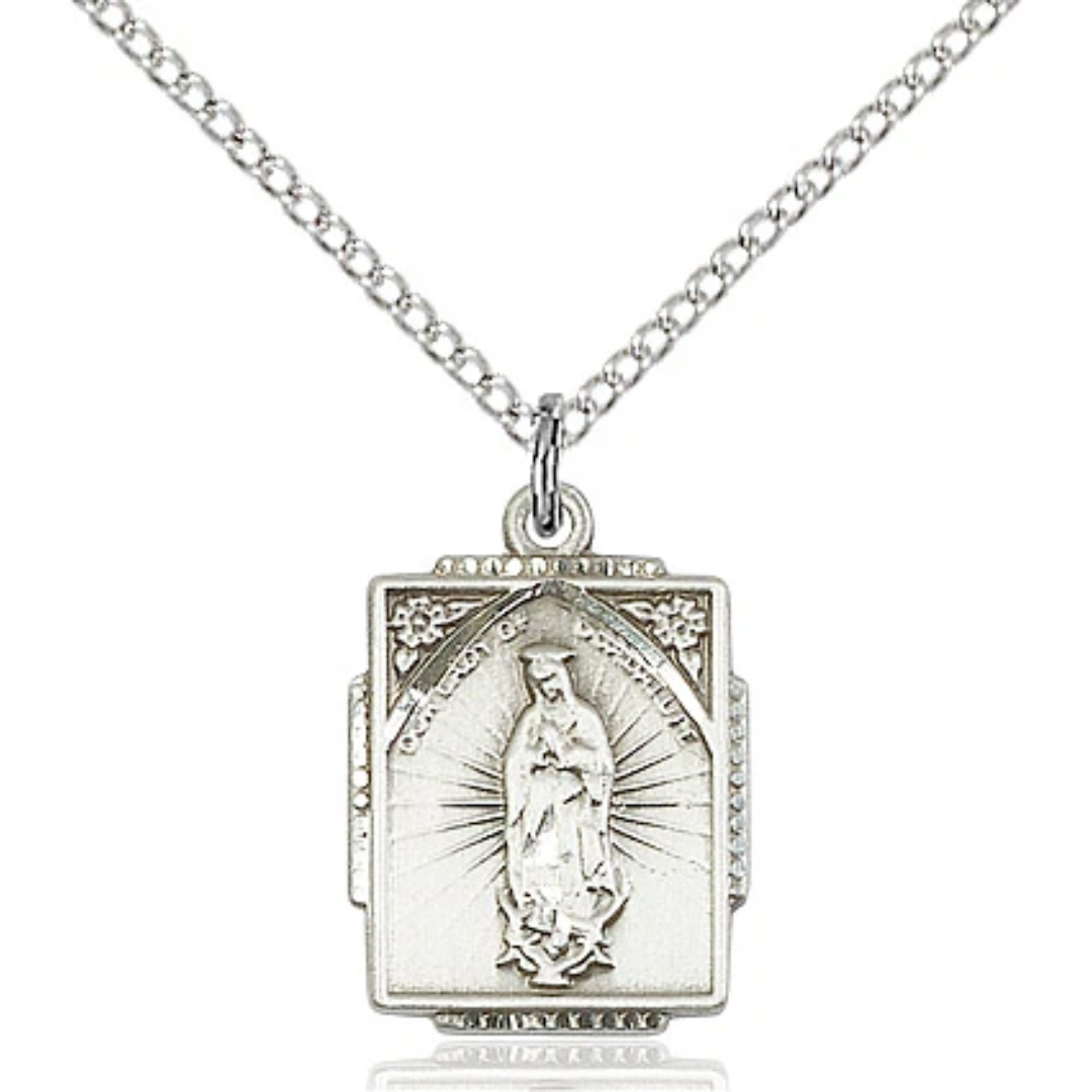 5/8 X 1/2 Sterling Silver O/L of Guadalupe Pendant on 18 inch Sterling Silver Light Curb Chain