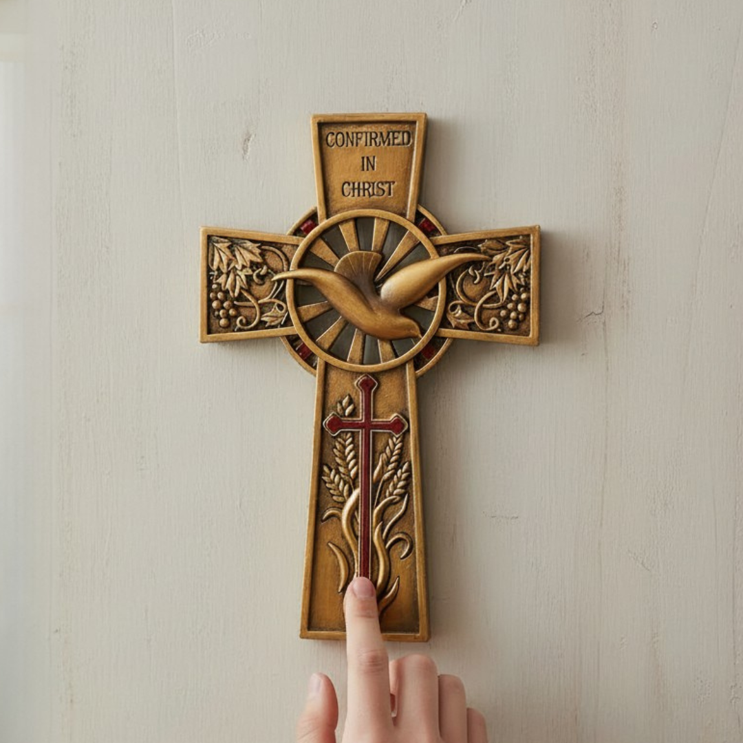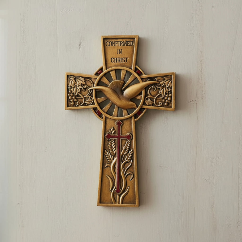 This exquisite Confirmation wall cross from Joseph's Studio beautifully commemorates one of the most sacred moments in a young person's faith journey. Crafted with meticulous attention to detail, the cross features a rich bronze finish that adds warmth and reverence to any space. The premium resin and stone mix construction ensures lasting durability while maintaining an elegant, handcrafted appearance that honors the significance of the Sacrament of Confirmation.