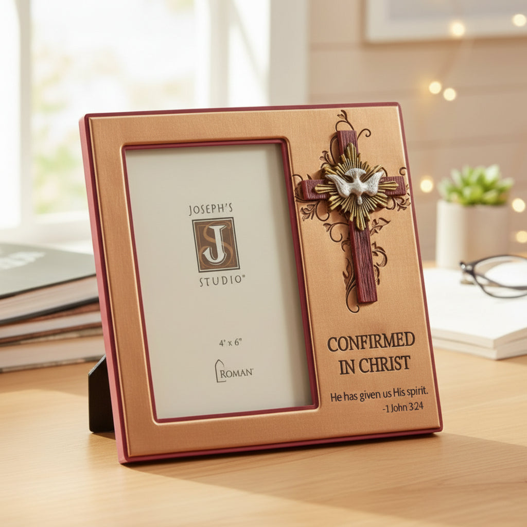 Celebrate one of life's most sacred milestones with this beautifully crafted Confirmation Frame. Beautifully designed by Roman, this 7.75-inch resin frame features elegant imagery and thoughtful details that honor the significance of Confirmation. The frame's timeless design will make a treasured keepsake that will preserve precious memories for years to come. Display a cherished 4x6 photograph from this special day in a frame worthy of the occasion.