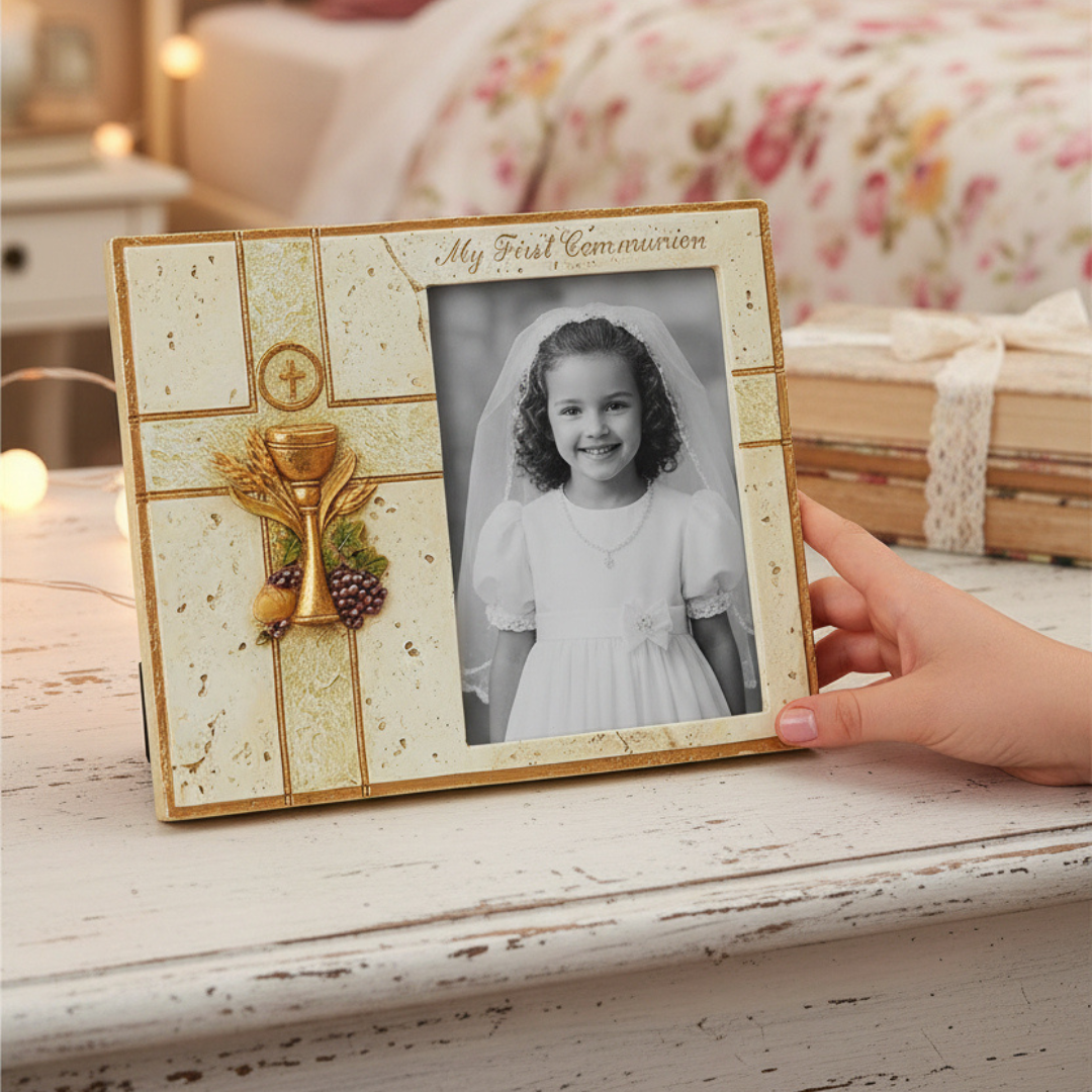 This beautiful frame doesn't just hold a photograph: it preserves a sacred memory and serves as a daily reminder of faith, family, and the grace received through the sacrament of Holy Communion.