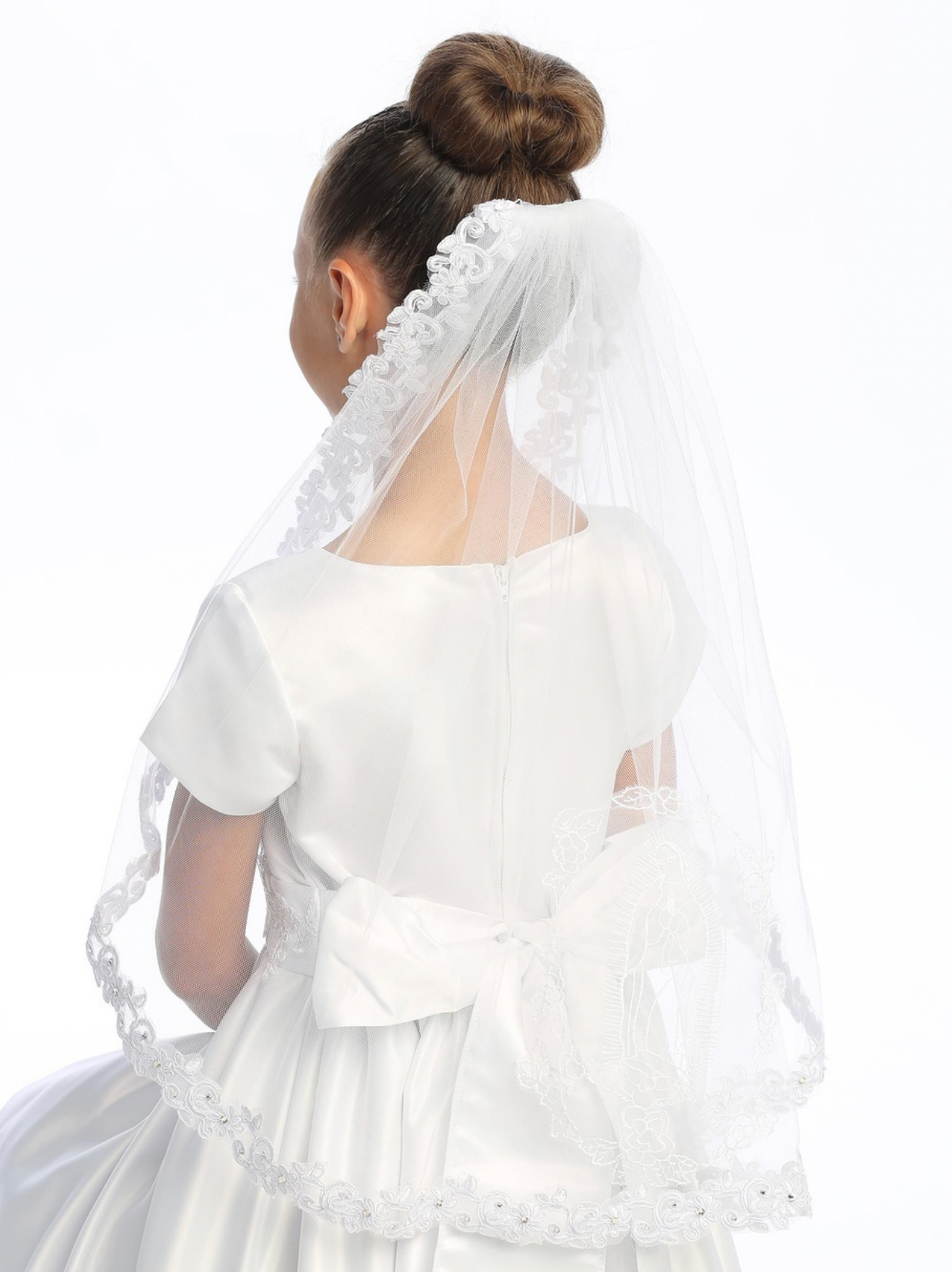 - Perfect 24-inch length provides graceful coverage for young communicants
