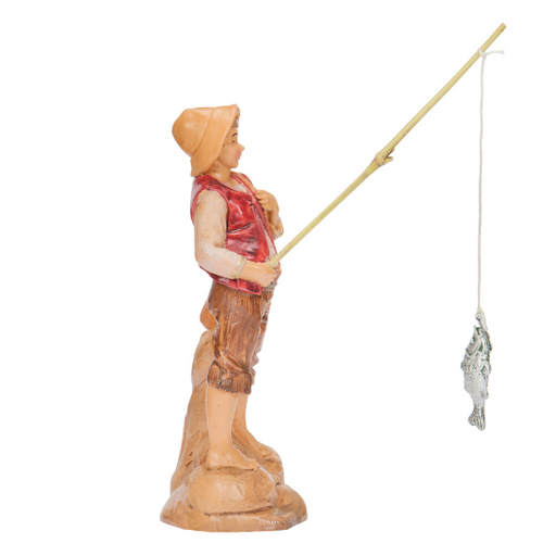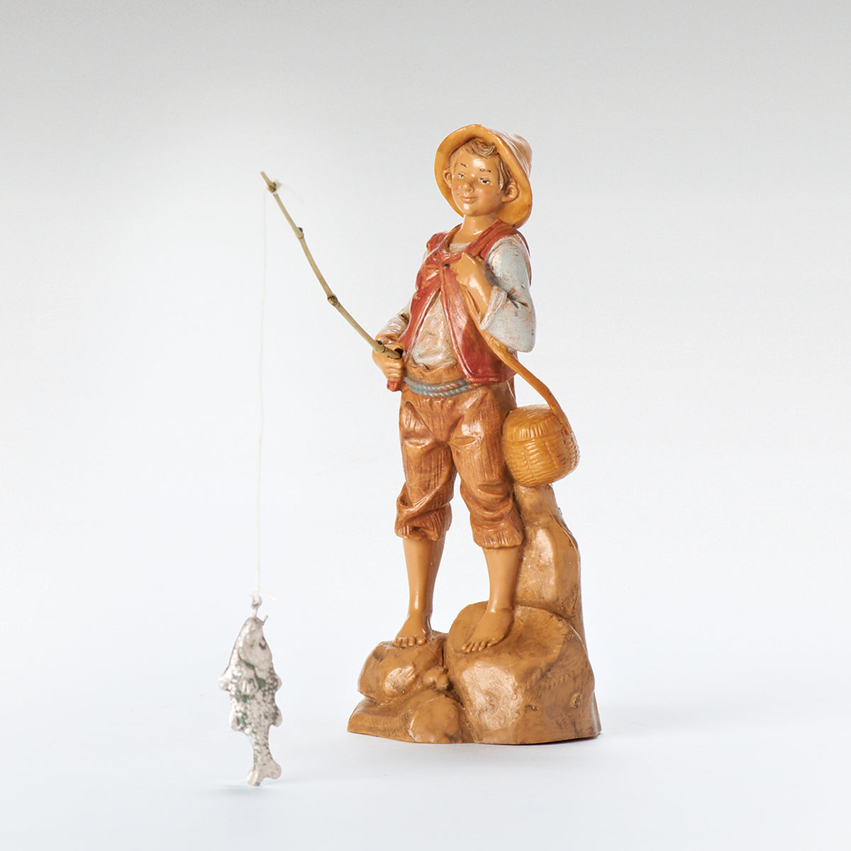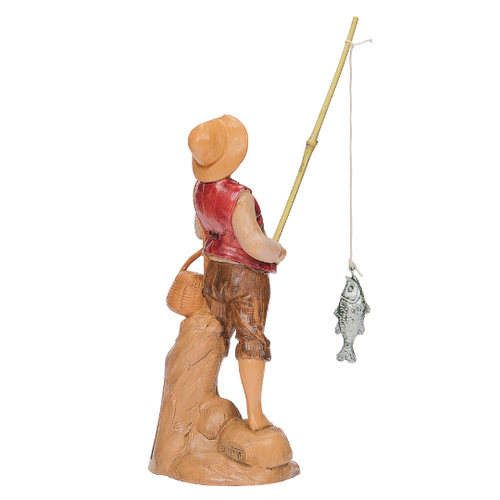 Jacob the Fisherman captures a relaxed moment along the riverbank, where young Jacob proudly displays his fresh catch. Complete with a woven basket and removable fishing pole, this figure brings an easygoing charm to any village scene. His carefree pose and barefoot stance add realism and character, perfect for seaside settings or tranquil corners of your Nativity display.