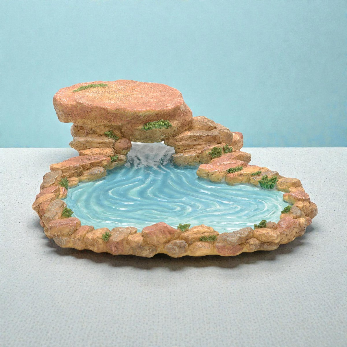 This 5" scale pond by Fontanini features sculpted stone edges, textured blue water, and painted greenery. The smooth surface includes a swirl design to mimic spring water. A versatile element that pairs well with fishermen, animals, or villagers in your nativity layout.