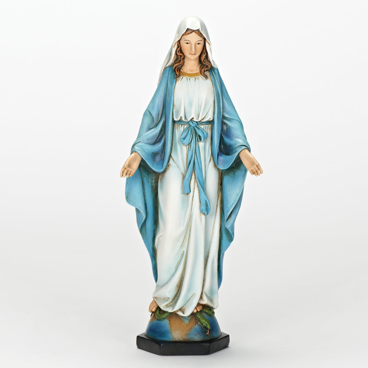 Honor the Blessed Virgin Mary with this beautifully detailed Our Lady of Grace figure from Joseph's Studio Renaissance Collection. Depicted with open arms and a serene expression, Mary invites all to trust in her intercession and motherly care. With delicate hand-painted detail and Renaissance artistry, this statue makes a meaningful addition to homes, chapels, and prayer spaces.