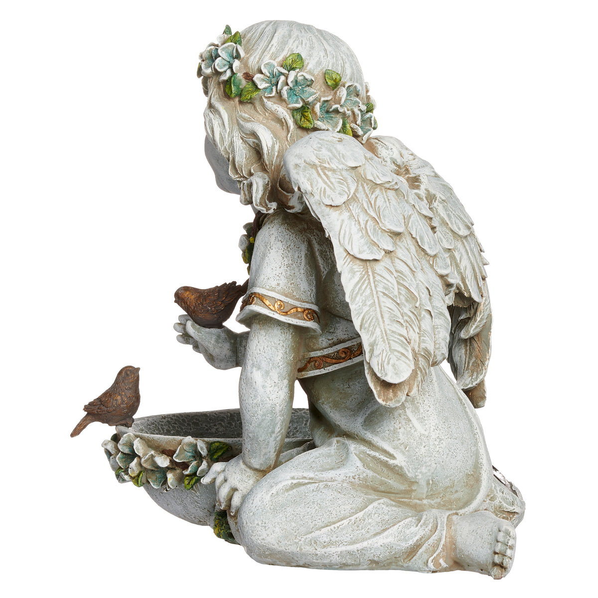 Transform your garden into a sacred sanctuary with this exquisite Solar Angel Birdbath Garden Statue from Roman's Joseph's Studio collection. This beautifully crafted piece features a serene guardian angel cradling a golden bird companion, while the integrated birdbath basin invites feathered visitors to rest and refresh. As daylight fades, the solar-powered LED light awakens, casting a gentle, heavenly glow that illuminates your outdoor space with warmth and grace. Meticulously sculpted from durable resin, this statue combines devotional artistry with functional garden décor.