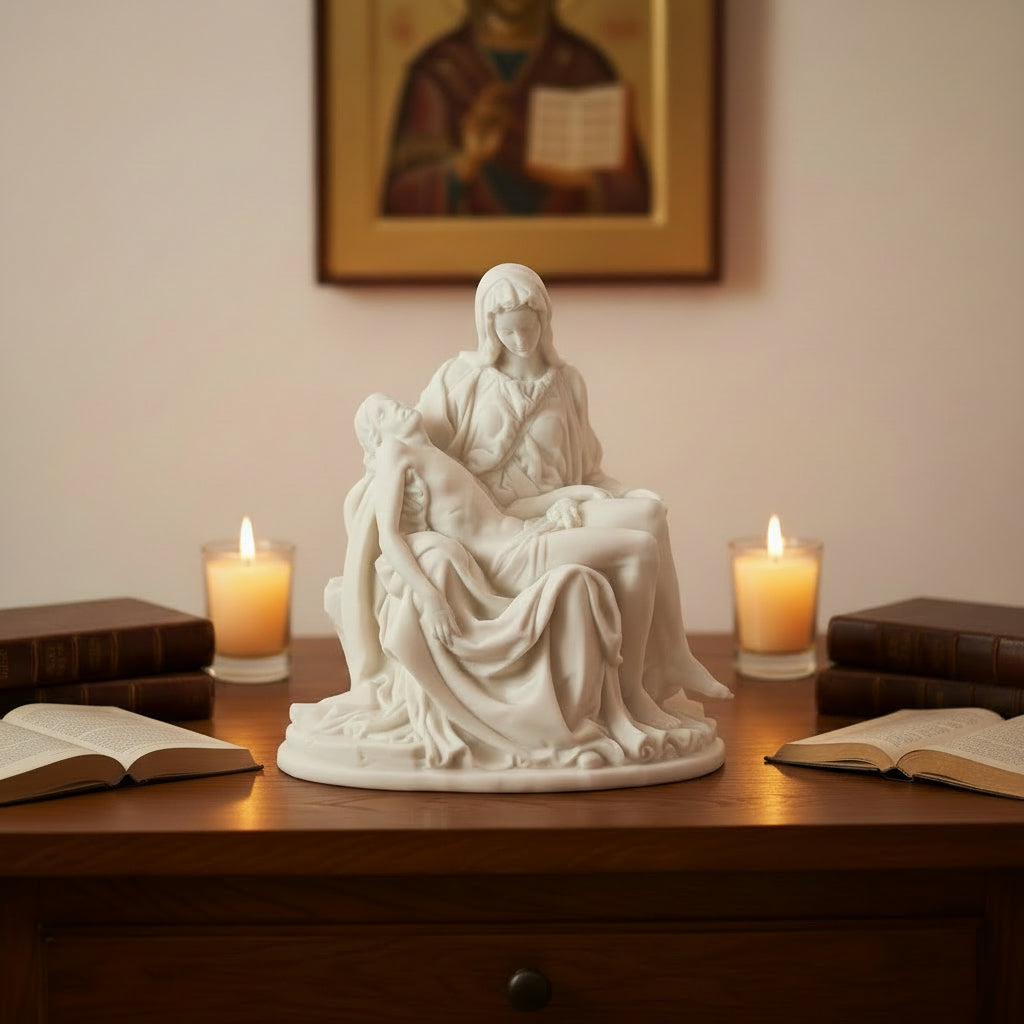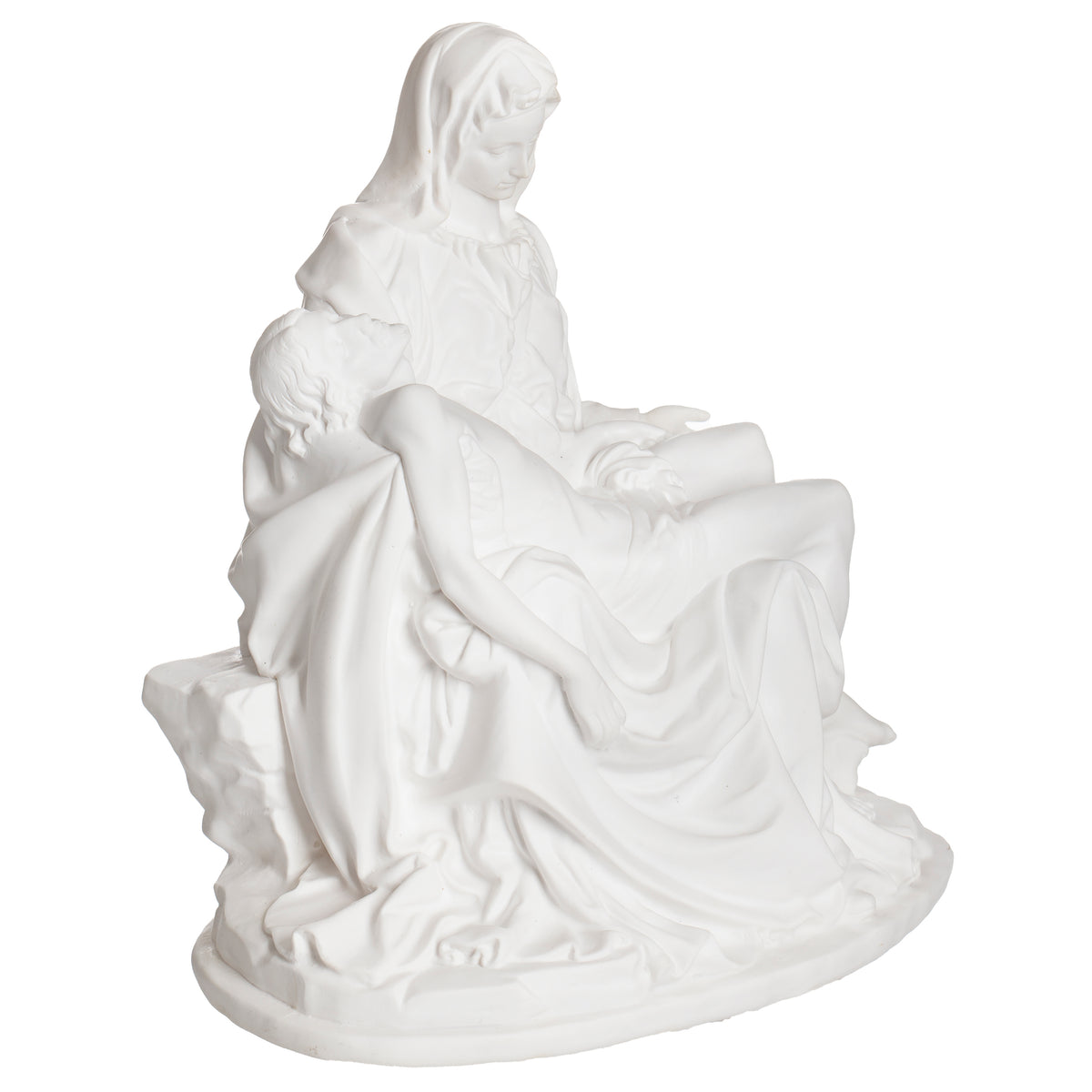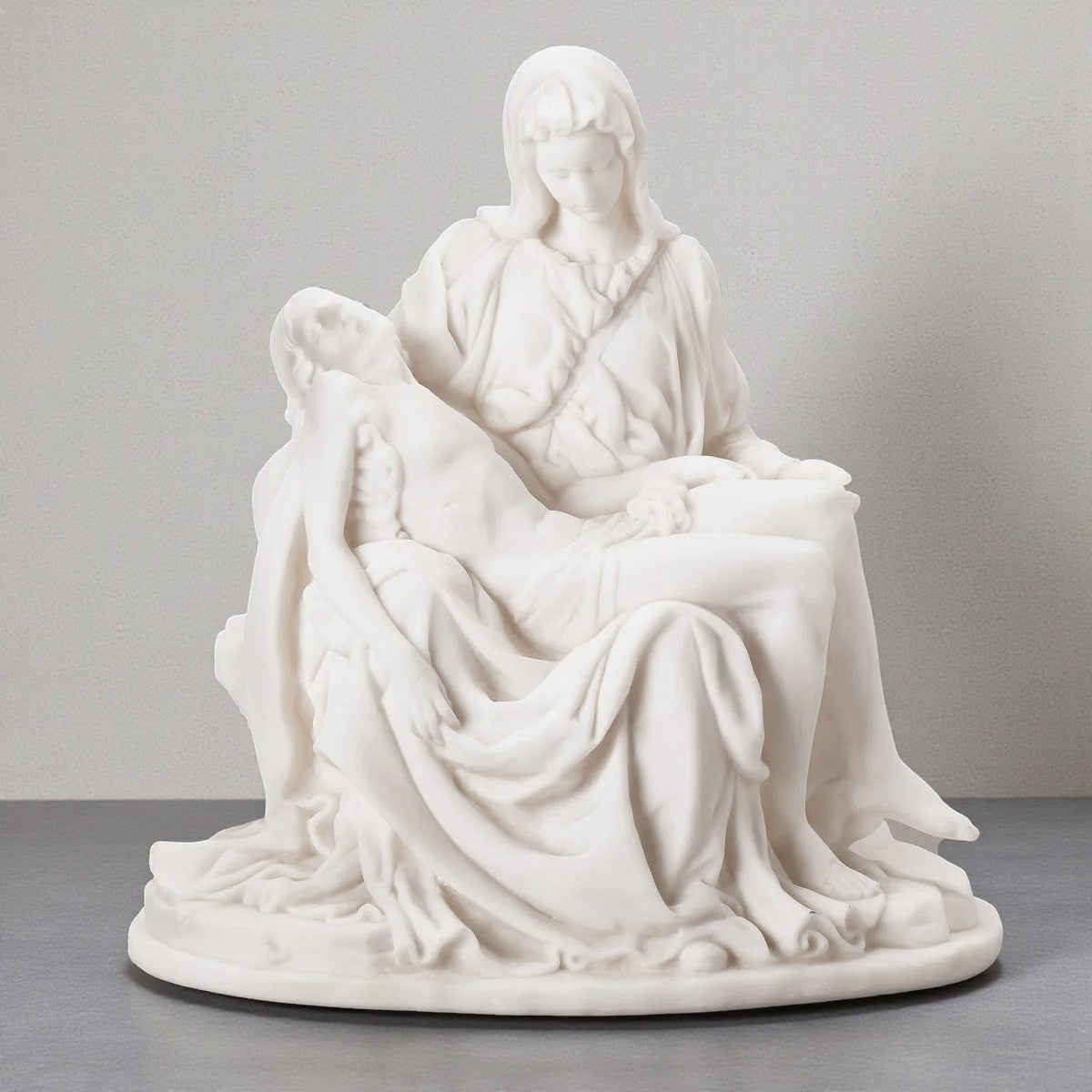 This exquisite White Pietà figure from Joseph's Studio Renaissance Collection captures the Blessed Mother cradling the body of her Son after the Crucifixion. Inspired by Michelangelo's masterpiece, this 8-inch statue is expertly sculpted in durable resin with smooth, graceful lines that convey both sorrow and sacred beauty. The pristine white finish enhances its timeless elegance, making it a reverent addition to prayer corners, memorial displays, or as a heartfelt gift for those seeking comfort and spiritual connection.