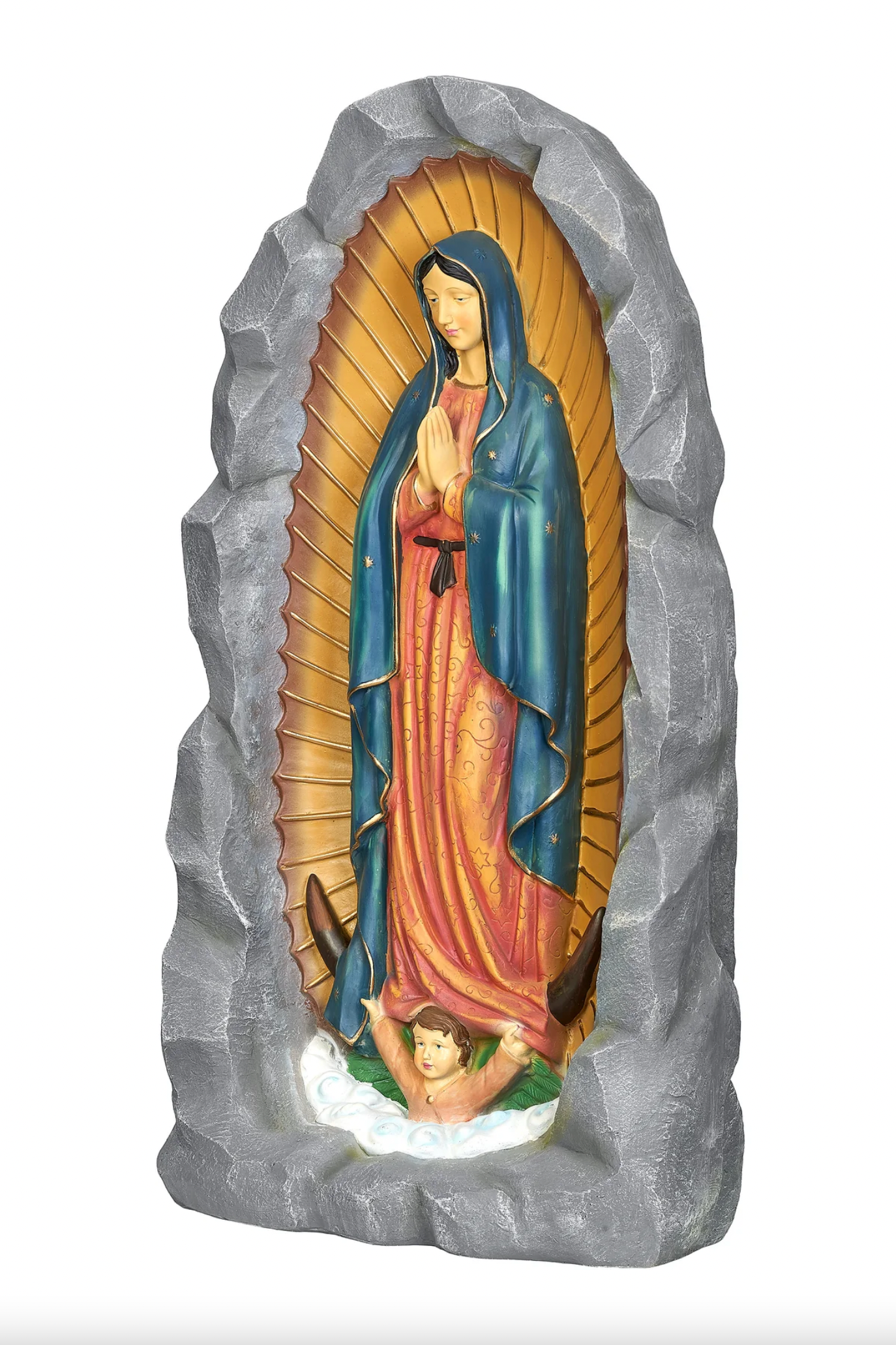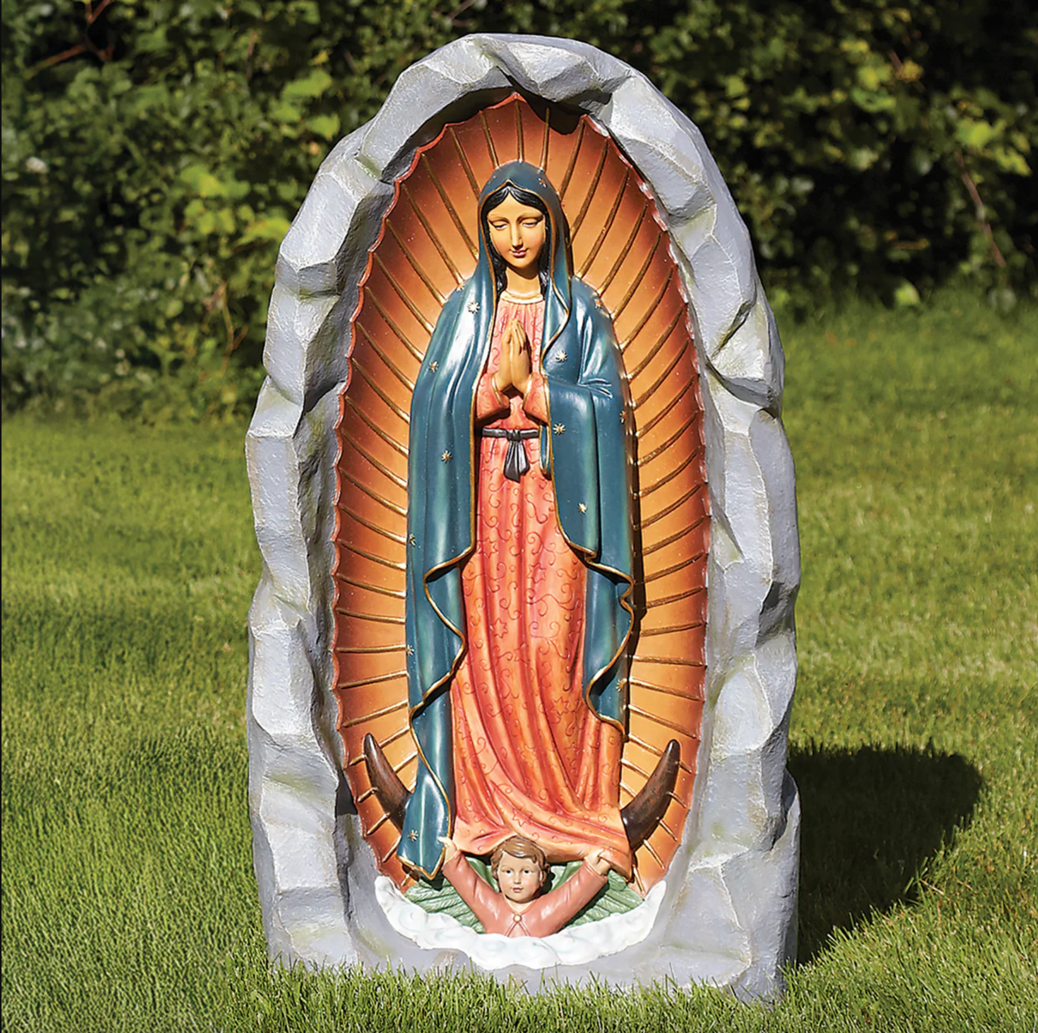 Transform your garden into a sacred sanctuary with this magnificent 36-inch Our Lady of Guadalupe grotto statue. Capturing the beloved image of Our Lady as she appeared to Saint Juan Diego, this devotional statue brings the patroness of the Americas to your outdoor prayer space. Expertly crafted in durable, weather-resistant resin with exquisite details, this grotto statue stands as a beautiful testament to faith and a serene focal point for prayer and reflection throughout the seasons.