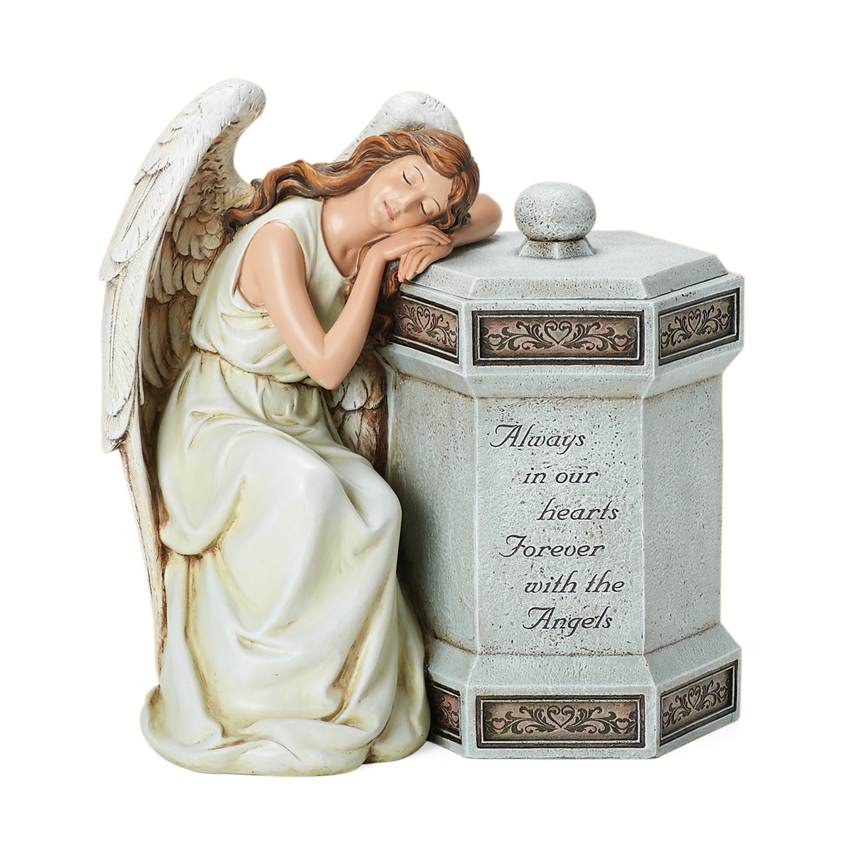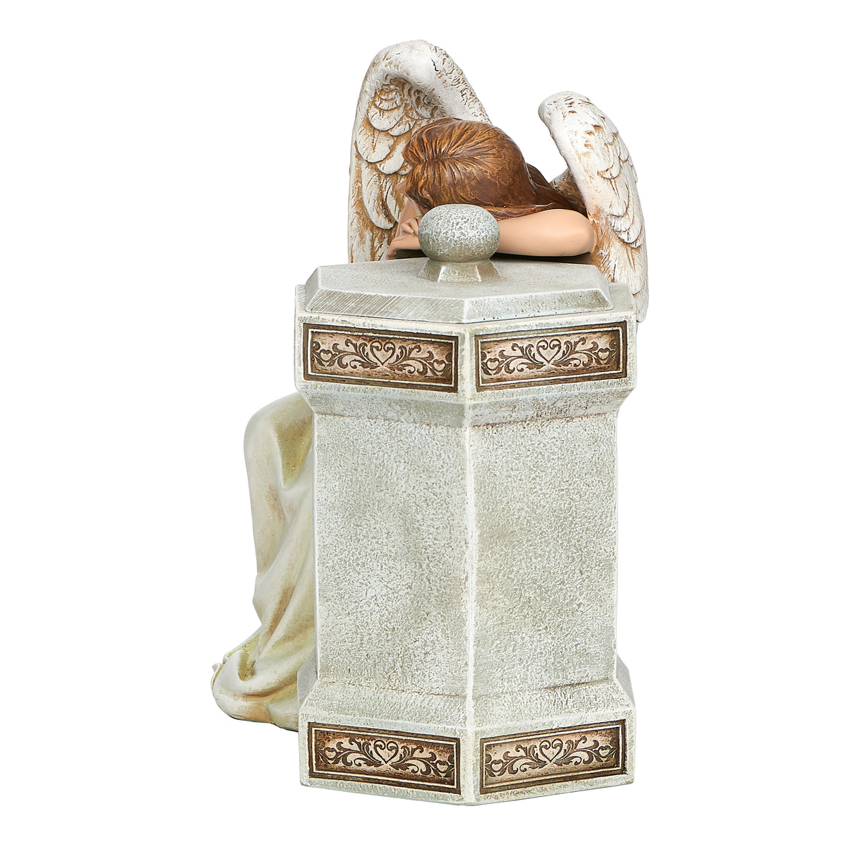 This Angel Memorial Box Garden piece is a beautiful way to honor the memory of a loved one. Featuring a serene angel design it's ideal for holding keepsakes, notes, or small mementos.