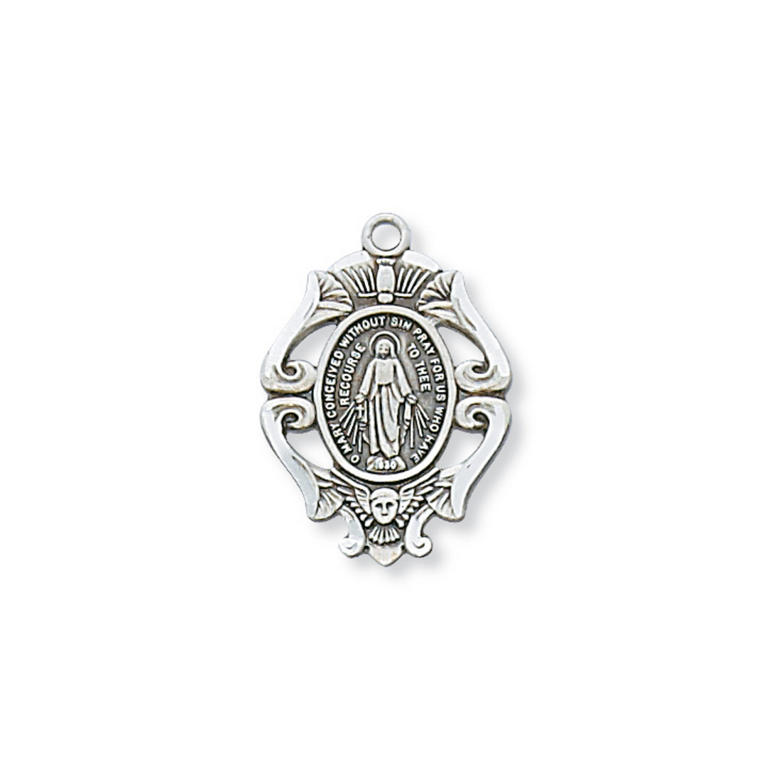 Sterling silver Miraculous Medal with 18 inch stainless steel chain