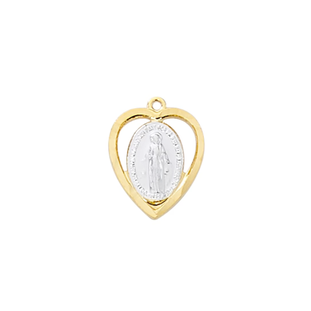 Gold over and Sterling Miraculous medal with 18 in rhodium plated brass chain boxed.