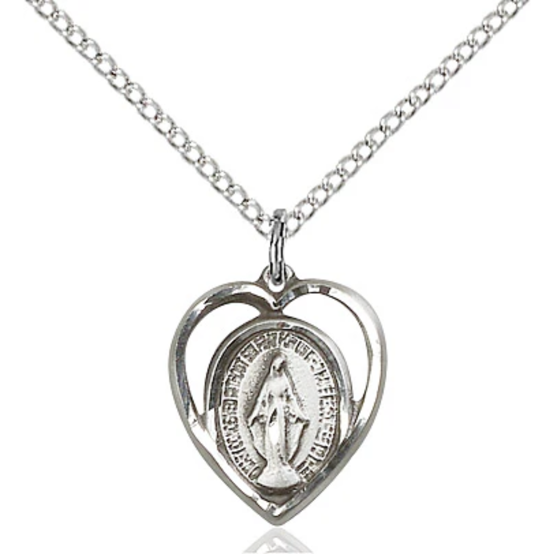 5/8 x 1/2 Sterling Silver Miraculous Pendant on 18 inch Sterling Silver Light Curb Chain