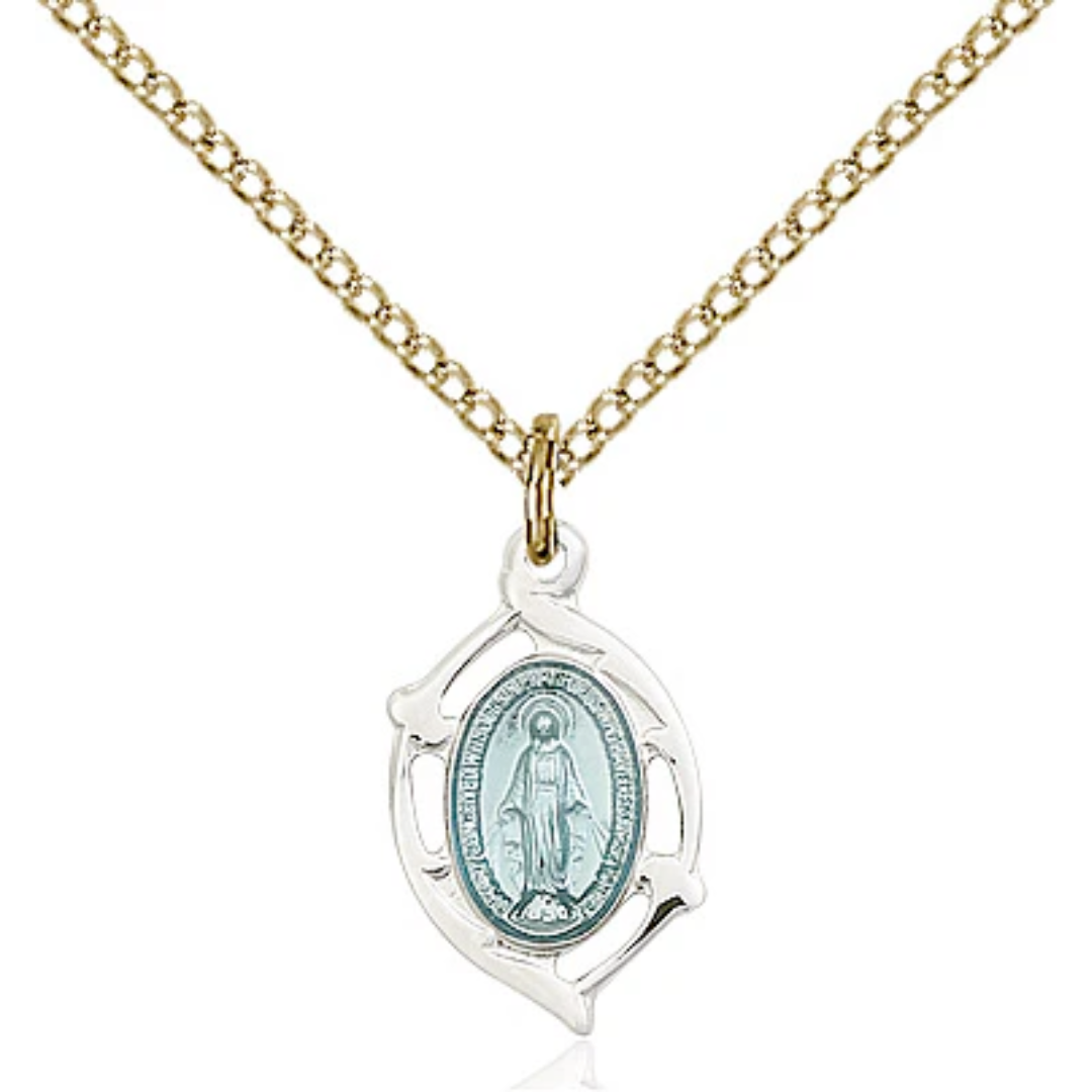5/8 x 3/8 Gold Plated Sterling Silver Miraculous Pendant on 18 inch Gold Filled Light Curb Chain