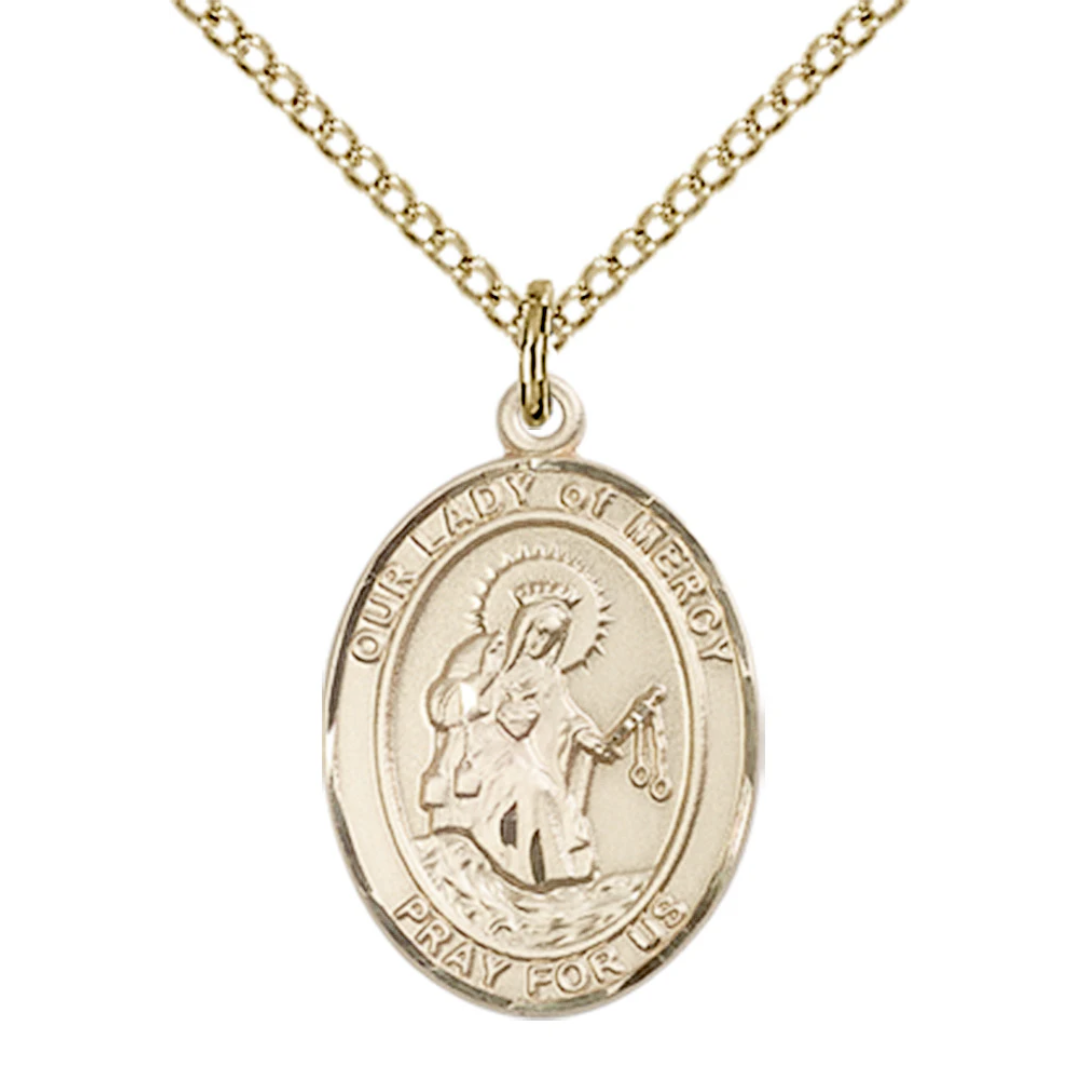 3/4 x 1/2 14kt Gold Filled O/L of Mercy Pendant on 18 inch Gold Filled Light Curb Chain