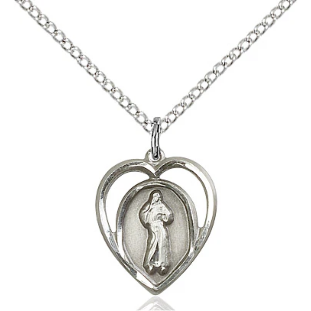 5/8 x 1/2 Sterling Silver Divine Mercy Pendant on a 18 inch Sterling Silver Light Curb Chain