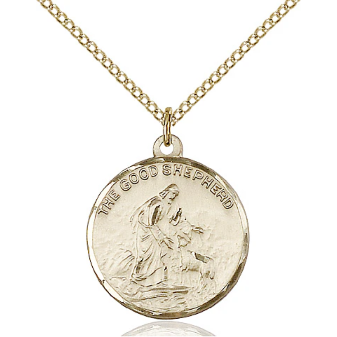 7/8 x 3/4 14kt Gold Filled Good Shepherd Pendant on a 18 inch Gold Filled Light Curb Chain