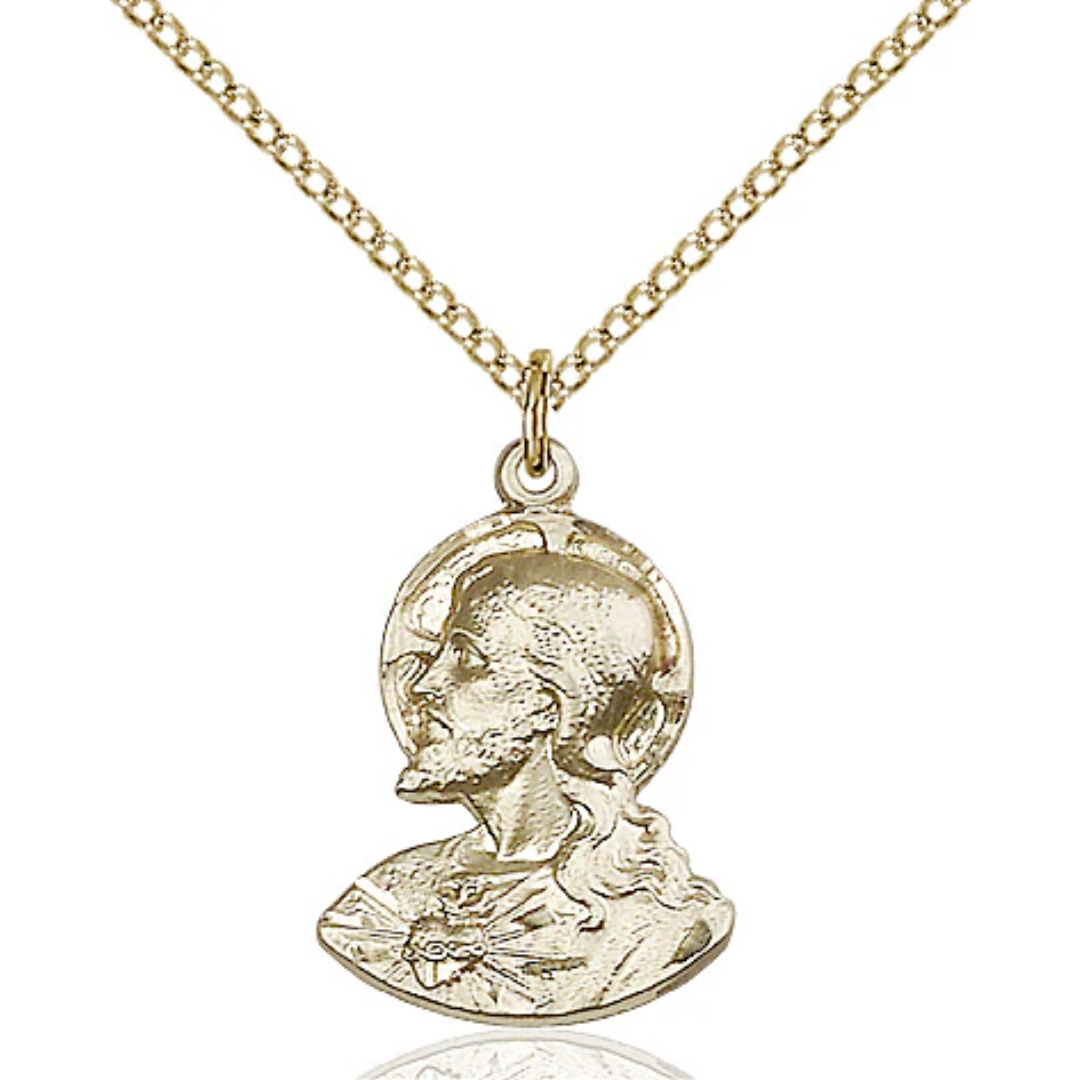 3/4 x 1/2 14kt Gold Filled Head of Christ Pendant on a 18 inch Gold Filled Light Curb Chain
