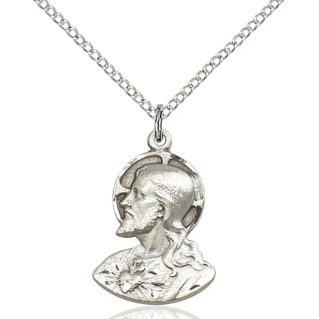 3/4 x 1/2 Sterling Silver Head of Christ Pendant on a 18 inch Sterling Silver Light Curb Chain