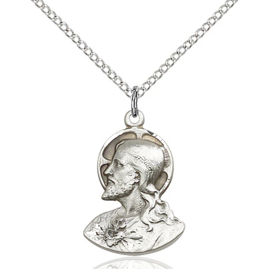 3/4 x 1/2 Sterling Silver Head of Christ Pendant on a 18 inch Sterling Silver Light Curb Chain