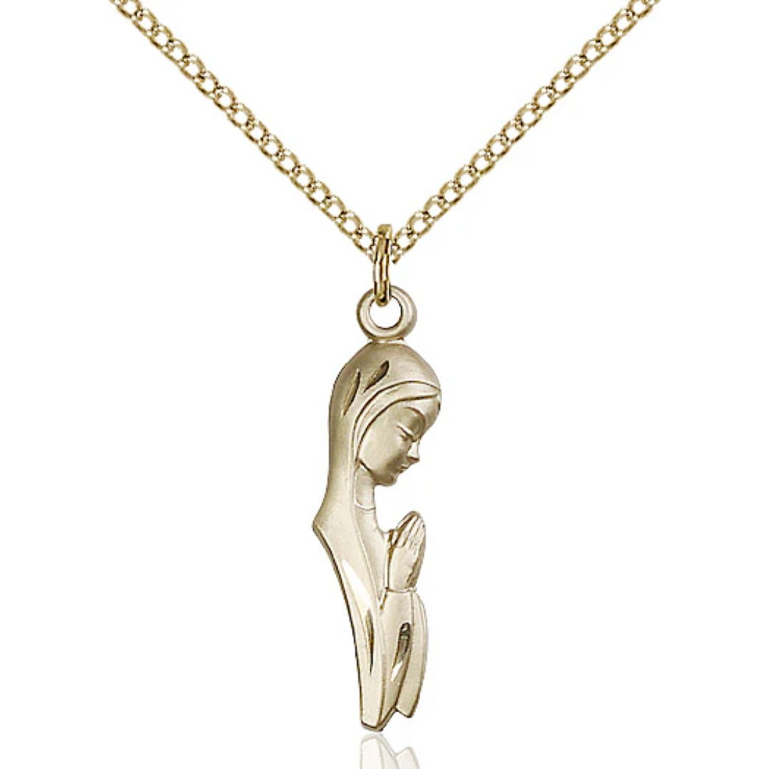 1 x 1/4 14kt Gold Filled Madonna Pendant on 18 inch Gold Filled Light Curb Chain